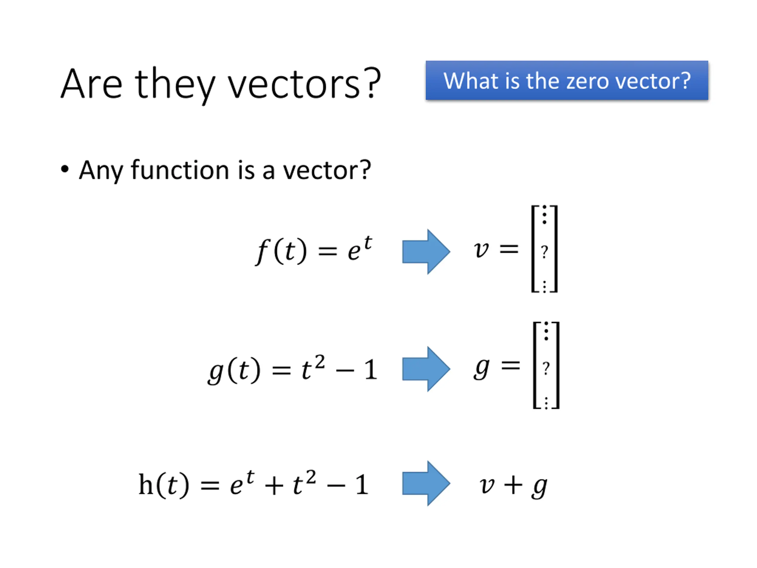 Are they vectors? What is the zero vector? Any function is a vector? ? ? = ?? ? = ? ? = ? ? = ?2 1 ? h ? = ??+ ?2 1 ? + ?