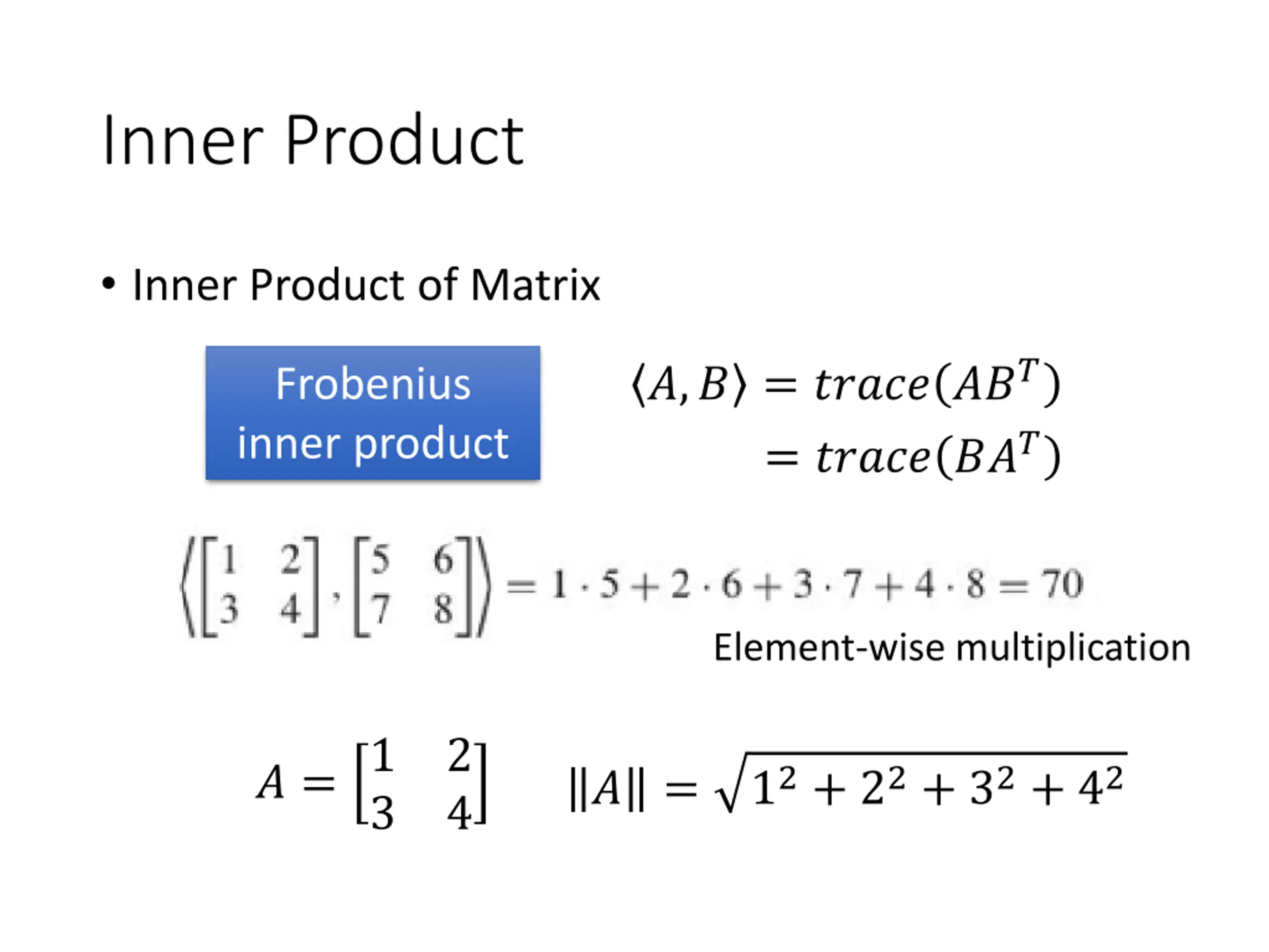 Inner Product Inner Product of Matrix ?,? = ????? ??? = ????? ??? Frobenius inner product Element-wise multiplication ? =1 2 4 12+ 22+ 32+ 42 ? = 3