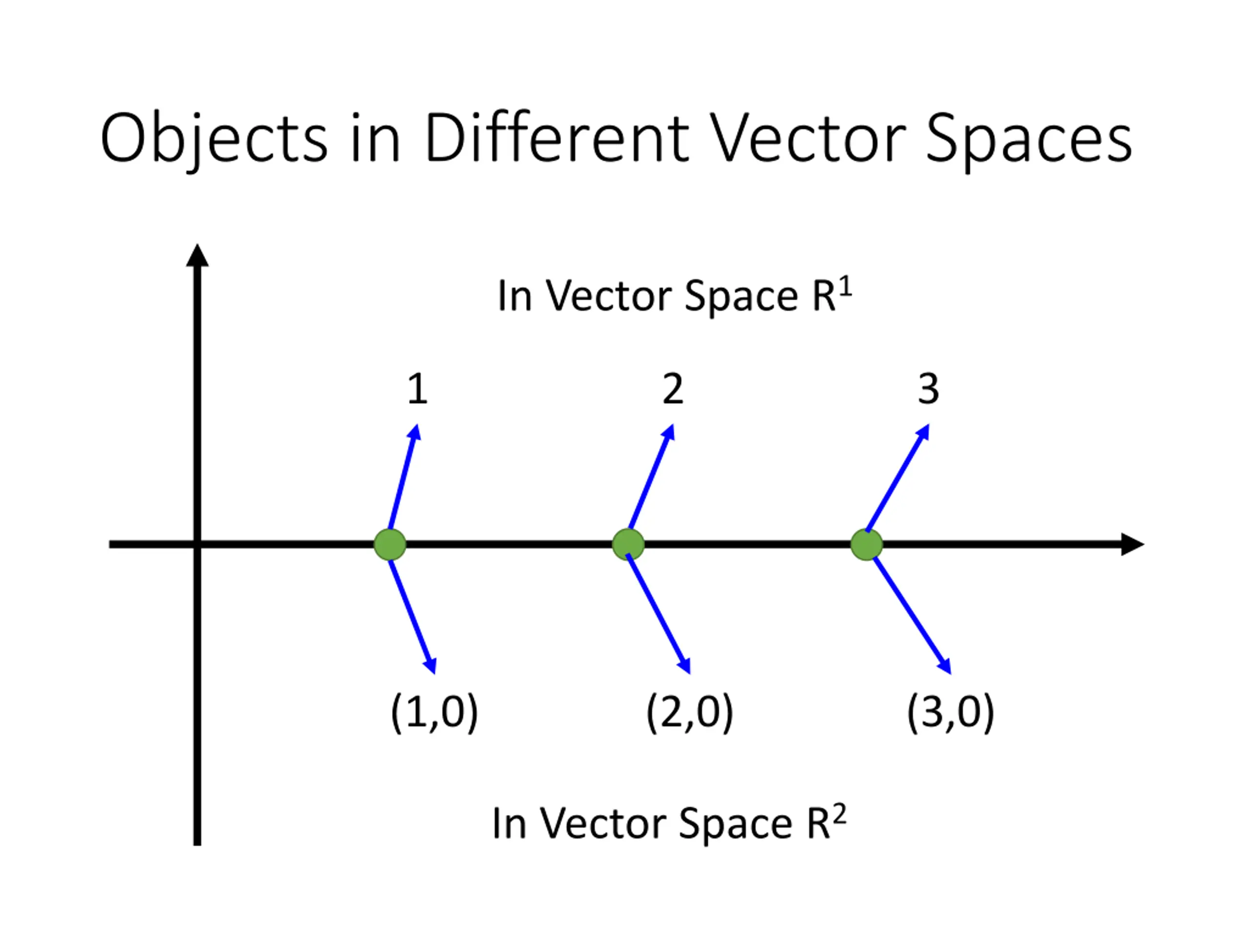 Objects in Different Vector Spaces In Vector Space R1 1 2 3 (1,0) (2,0) (3,0) In Vector Space R2