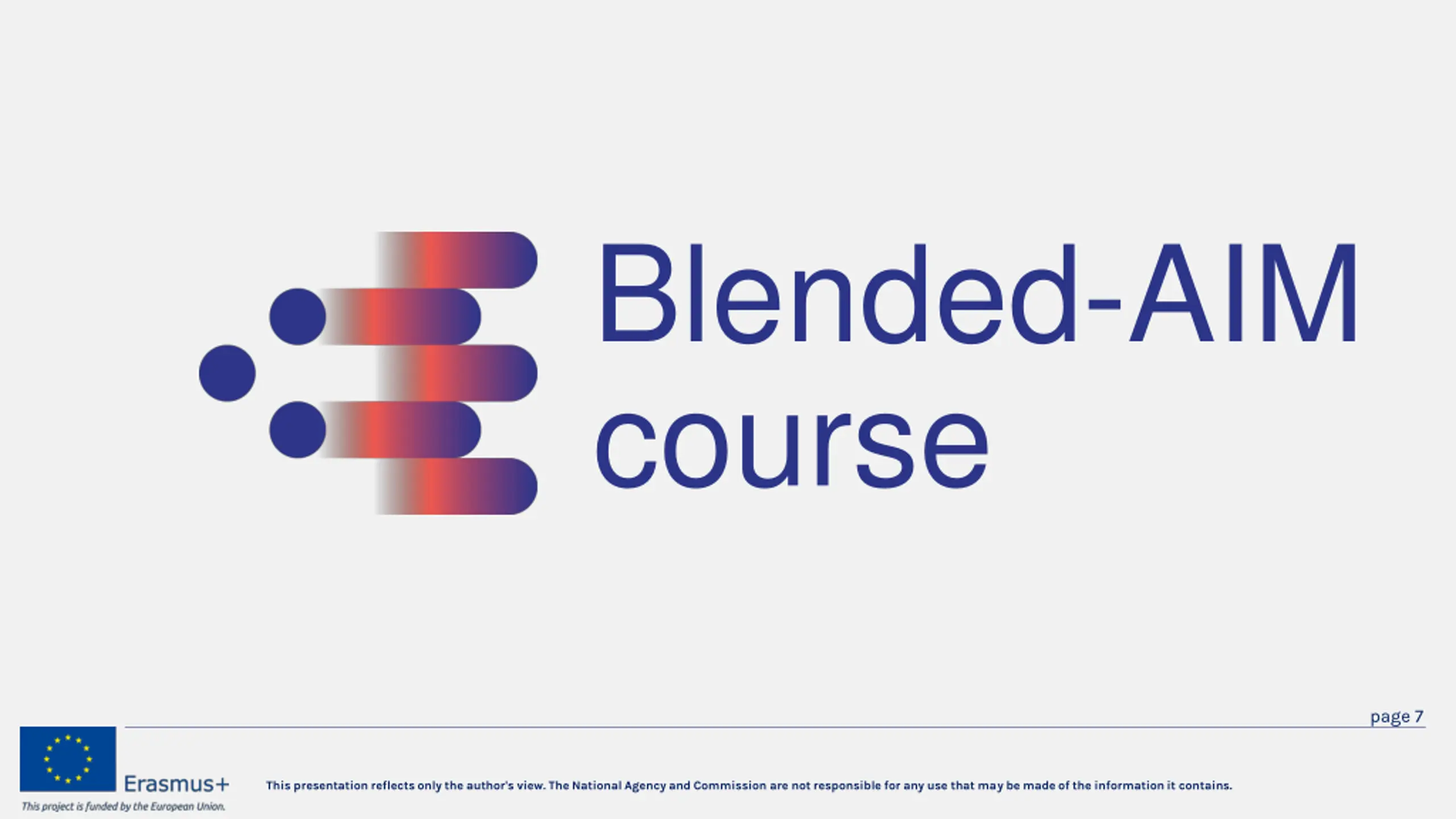 Blended-AIM course page 7 This presentation reflects only the author's view. The National Agency and Commission are not responsible for any use that may be made of the information it contains.