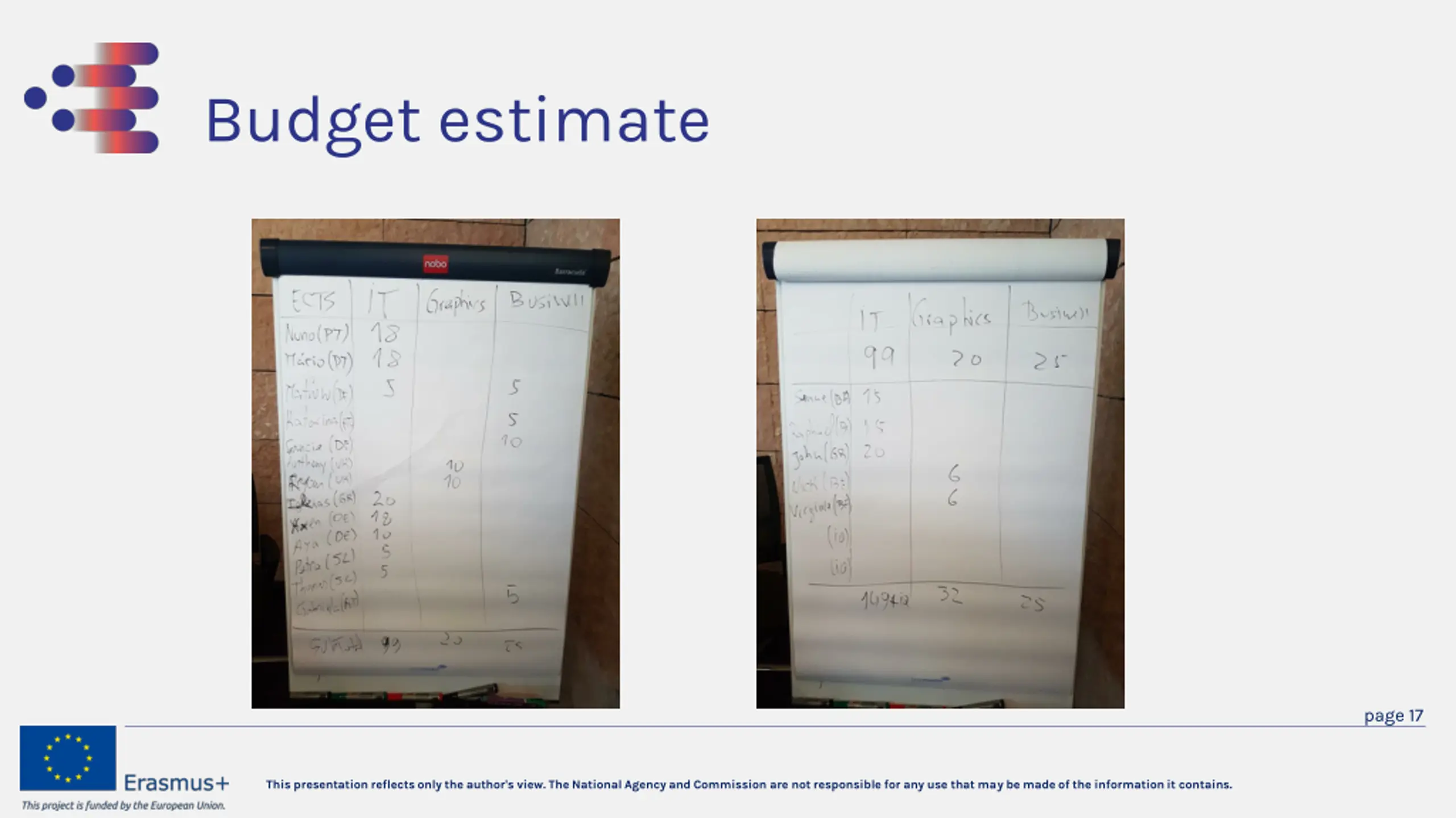 Budget estimate page 17 This presentation reflects only the author's view. The National Agency and Commission are not responsible for any use that may be made of the information it contains.