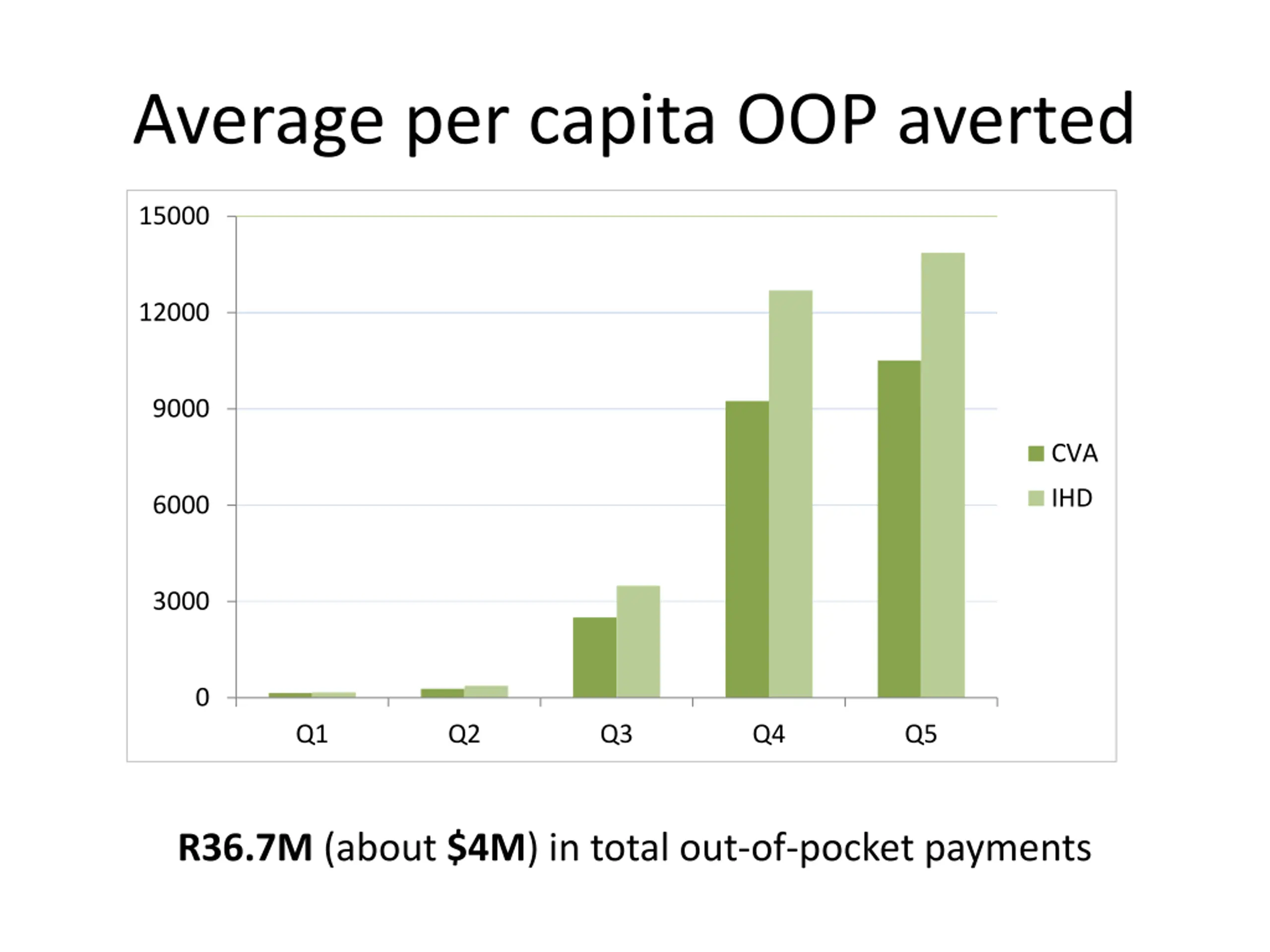 Average per capita OOP averted 15000 12000 9000 CVA IHD 6000 3000 0 Q1 Q2 Q3 Q4 Q5 R36.7M (about $4M) in total out-of-pocket payments