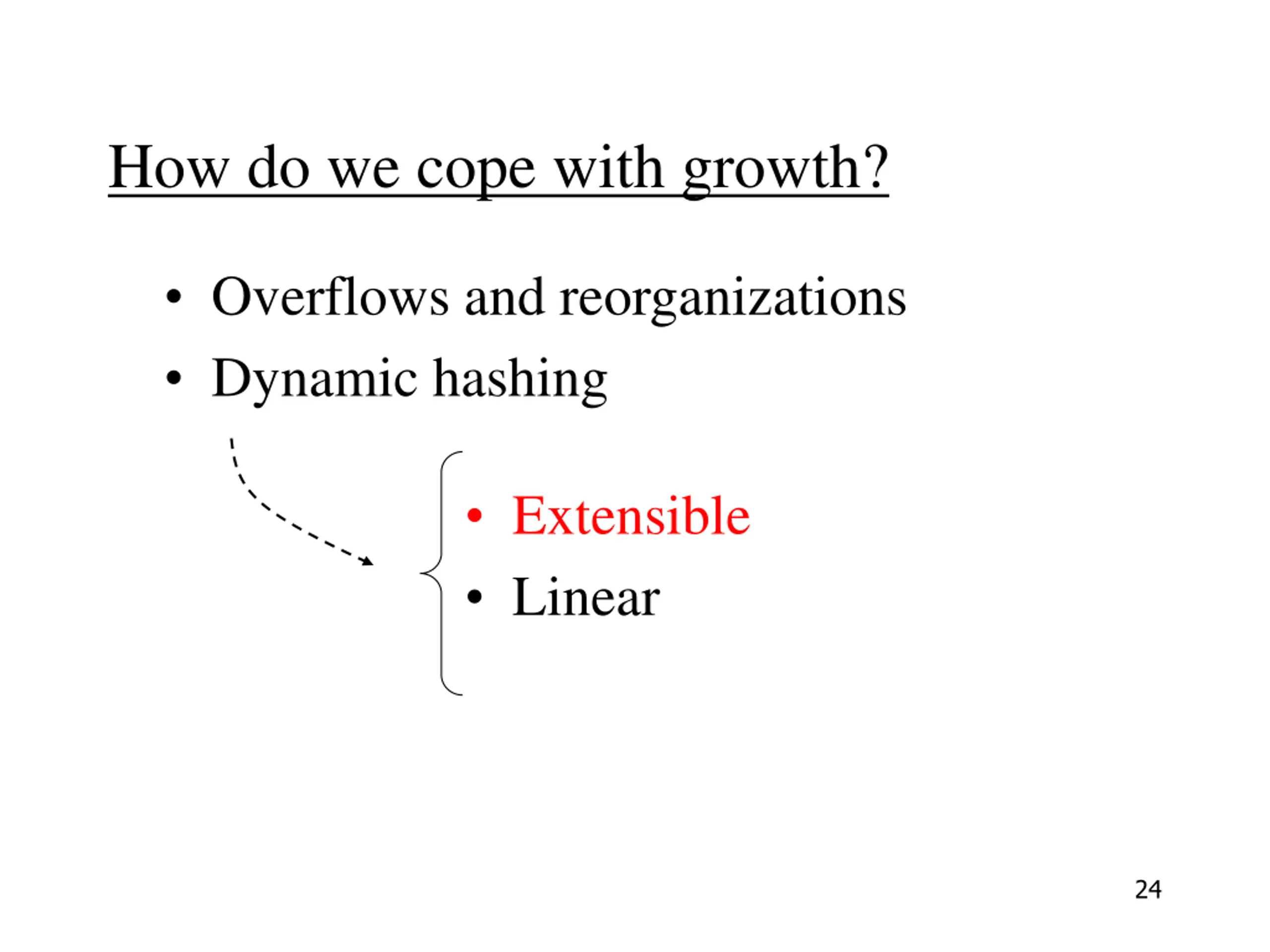 How do we cope with growth? Overflows and reorganizations Dynamic hashing Extensible Linear 23