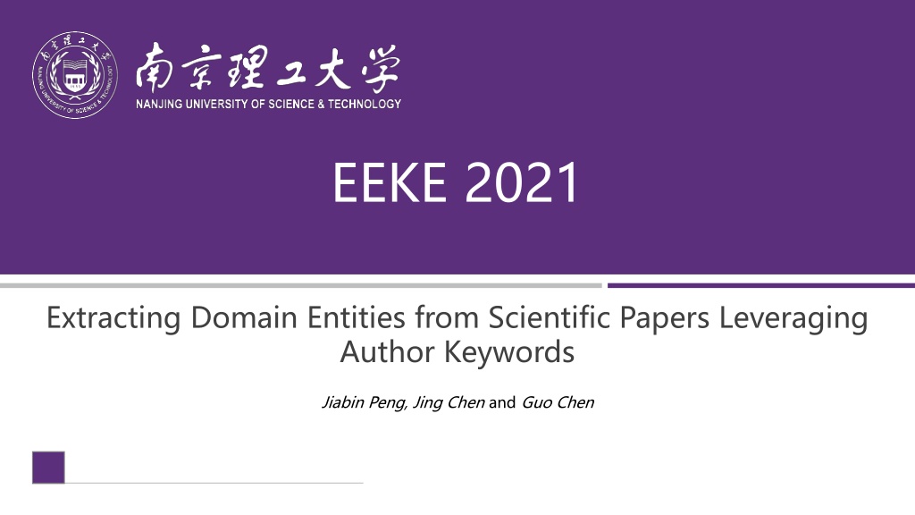 EEKE 2021 Extracting Domain Entities from Scientific Papers Leveraging Author Keywords Jiabin Peng, Jing Chen and Guo Chen
