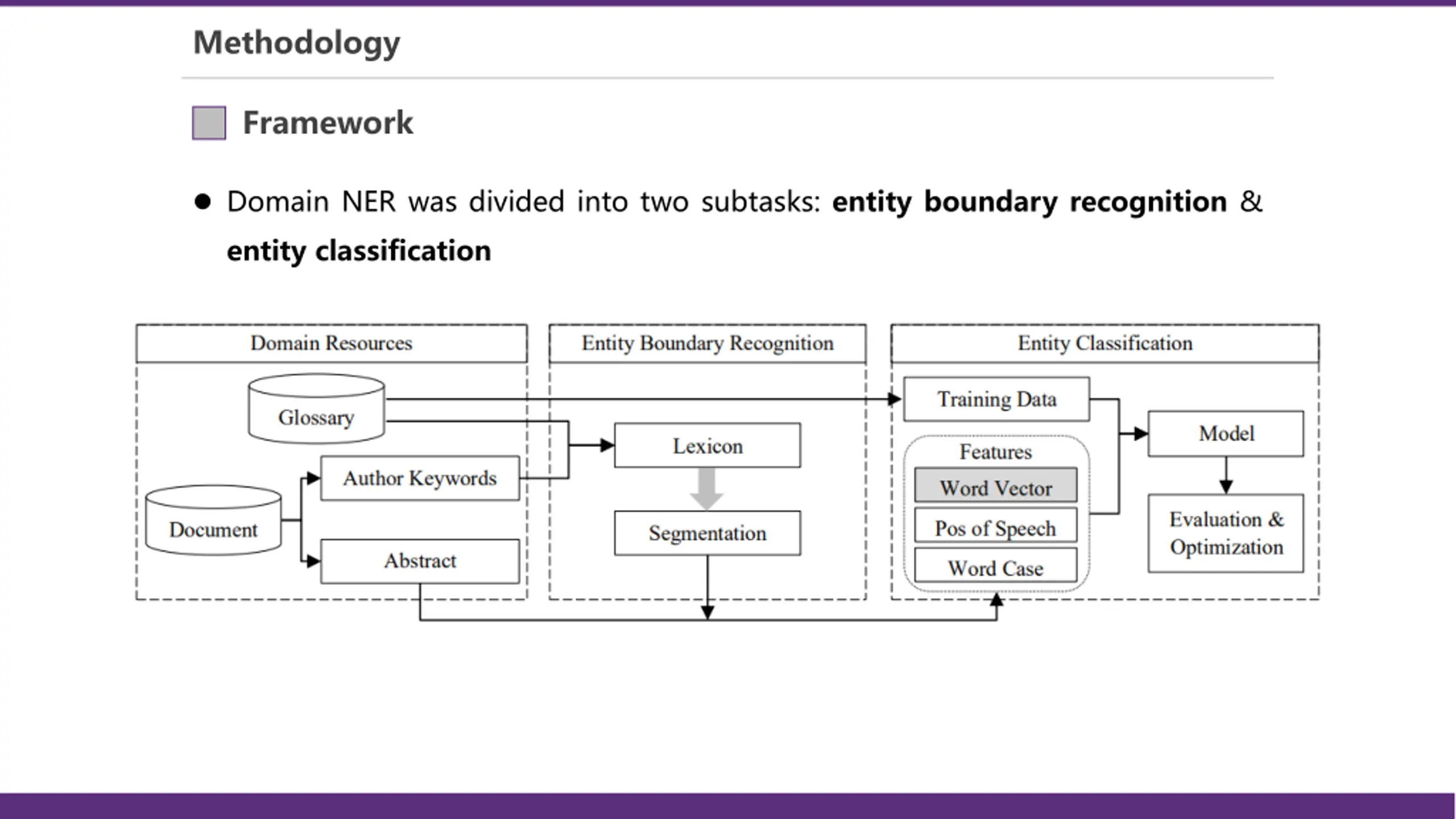 Methodology Framework Domain NER was divided into two subtasks: entity boundary recognition & entity classification