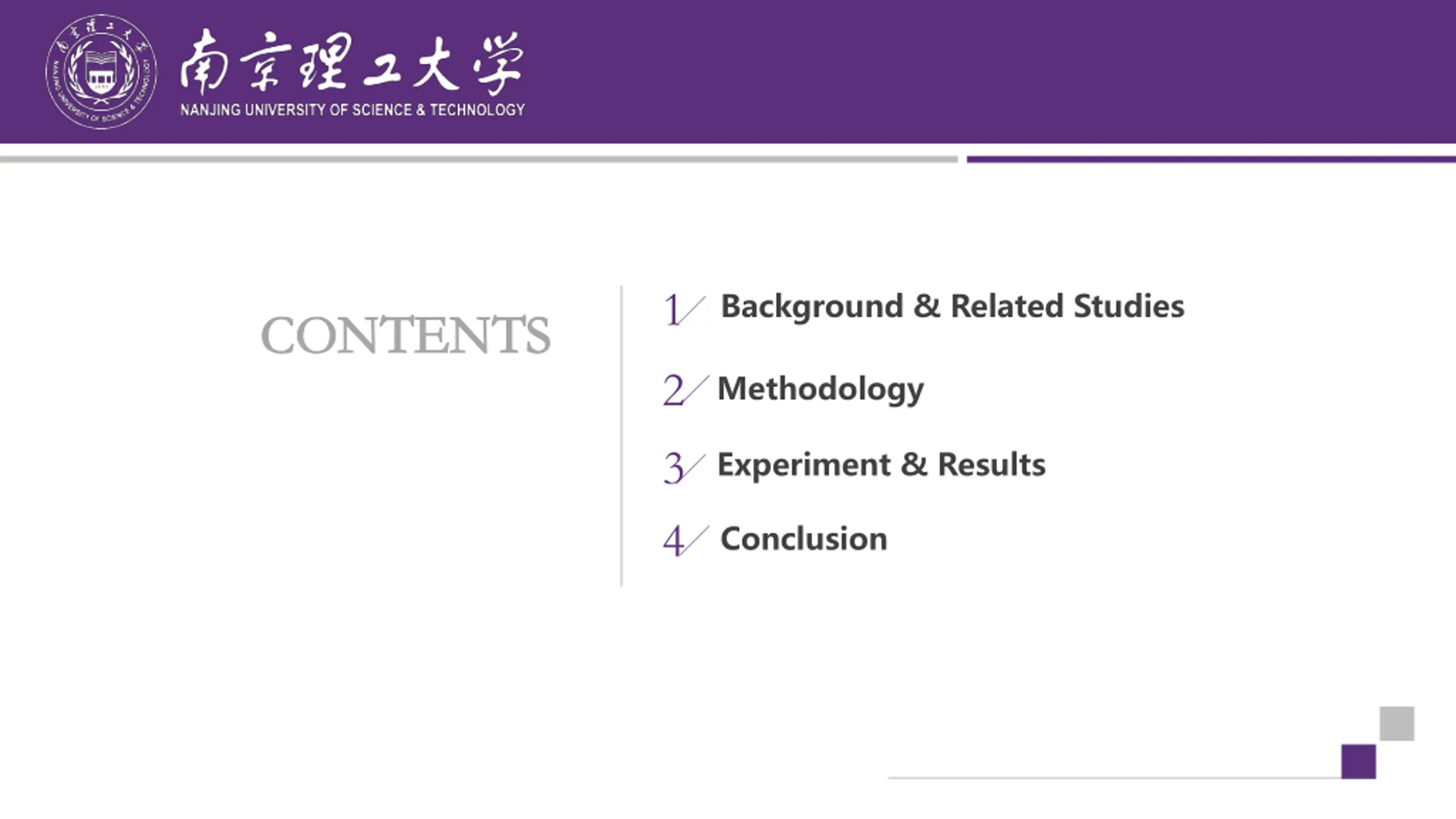 1 Background & Related Studies CONTENTS CONTENTS 2 3 4 Methodology Experiment & Results Conclusion
