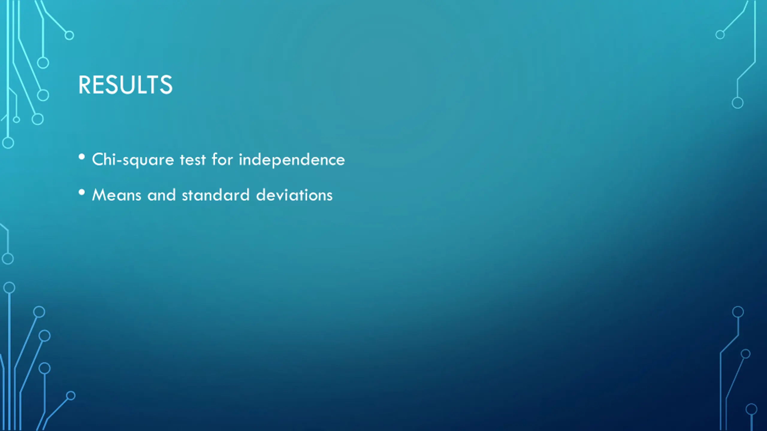 RESULTS Chi-square test for independence Means and standard deviations