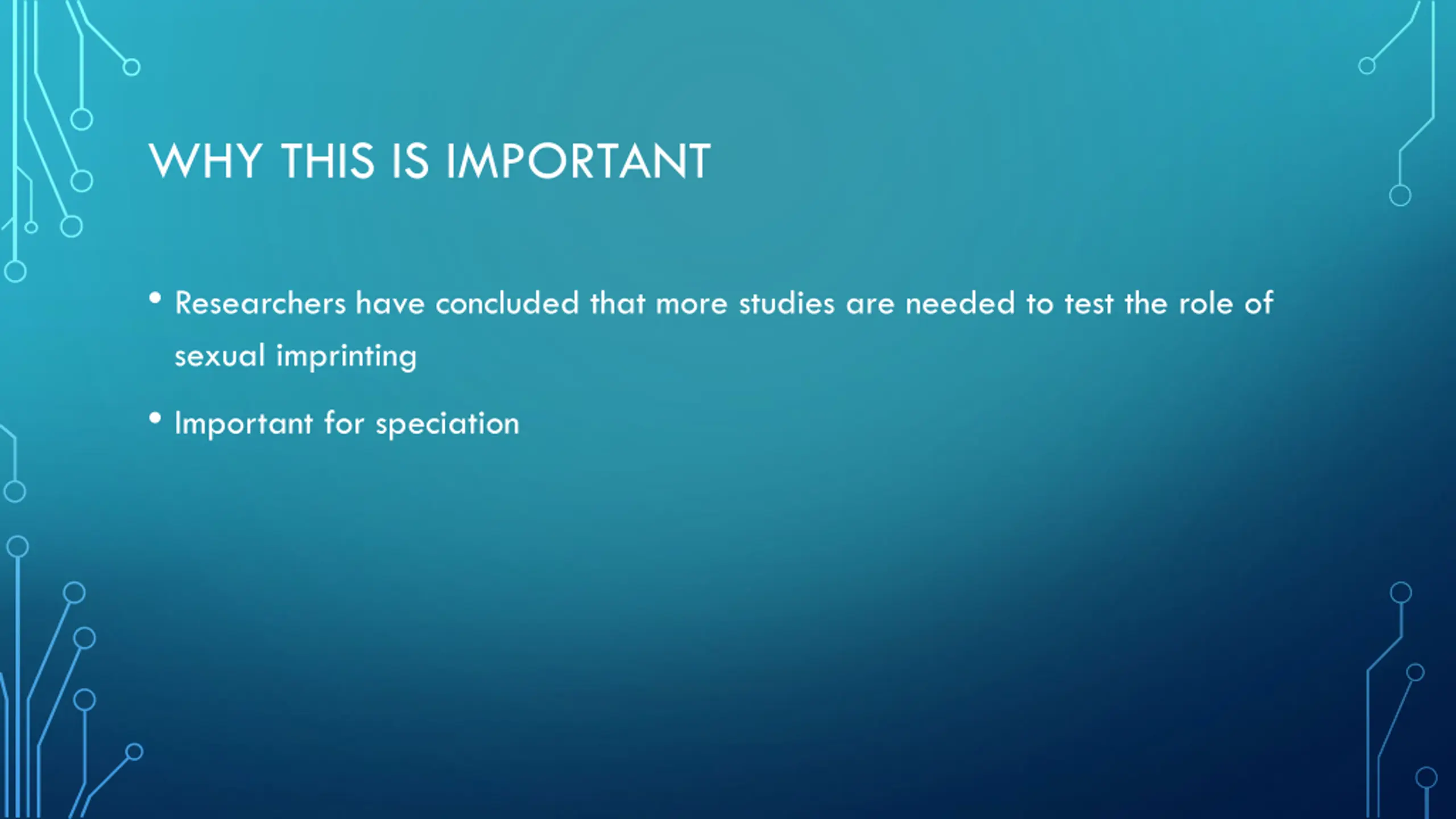 WHY THIS IS IMPORTANT Researchers have concluded that more studies are needed to test the role of sexual imprinting Important for speciation