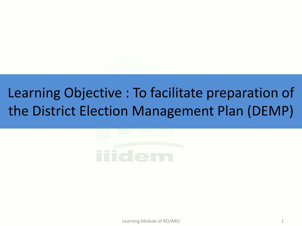 Learning Objective : To facilitate preparation of the District Election Management Plan (DEMP) Learning Module of RO/ARO 1