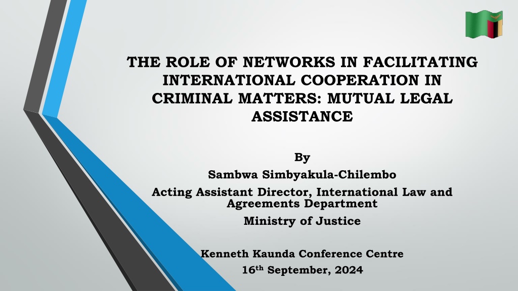 THE ROLE OF NETWORKS IN FACILITATING INTERNATIONAL COOPERATION IN CRIMINAL MATTERS: MUTUAL LEGAL ASSISTANCE By Sambwa Simbyakula-Chilembo Acting Assistant Director, International Law and Agreements Department Ministry of Justice Kenneth Kaunda Conference Centre 16thSeptember, 2024