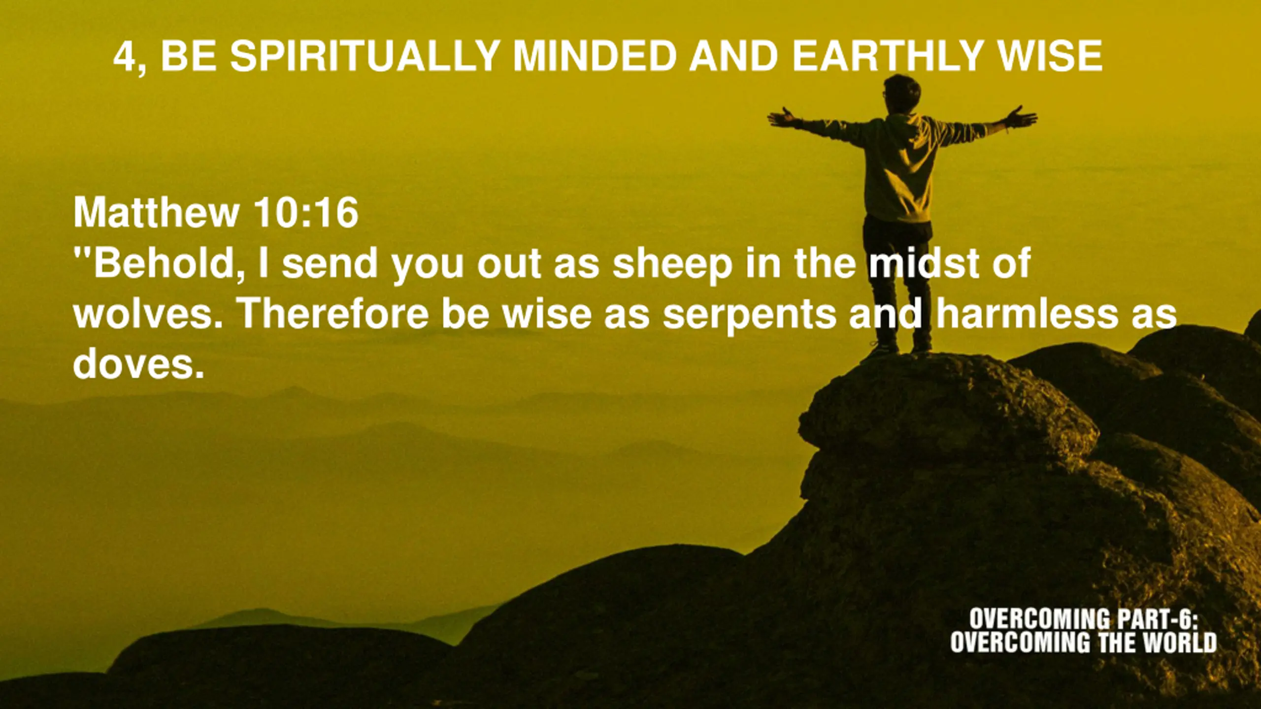 4, BE SPIRITUALLY MINDED AND EARTHLY WISE Matthew 10:16 "Behold, I send you out as sheep in the midst of wolves. Therefore be wise as serpents and harmless as doves.