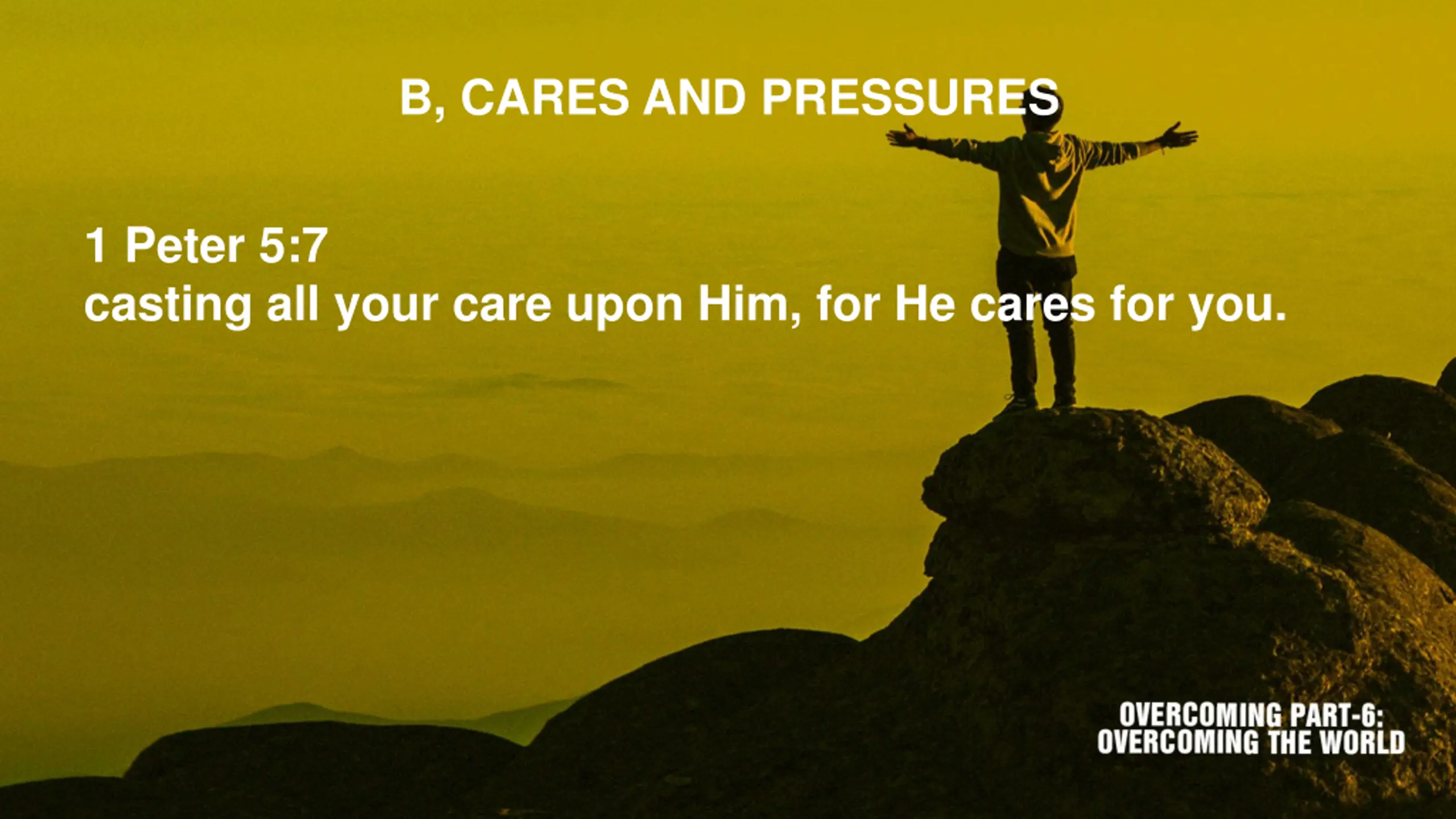 B, CARES AND PRESSURES 1 Peter 5:7 casting all your care upon Him, for He cares for you.