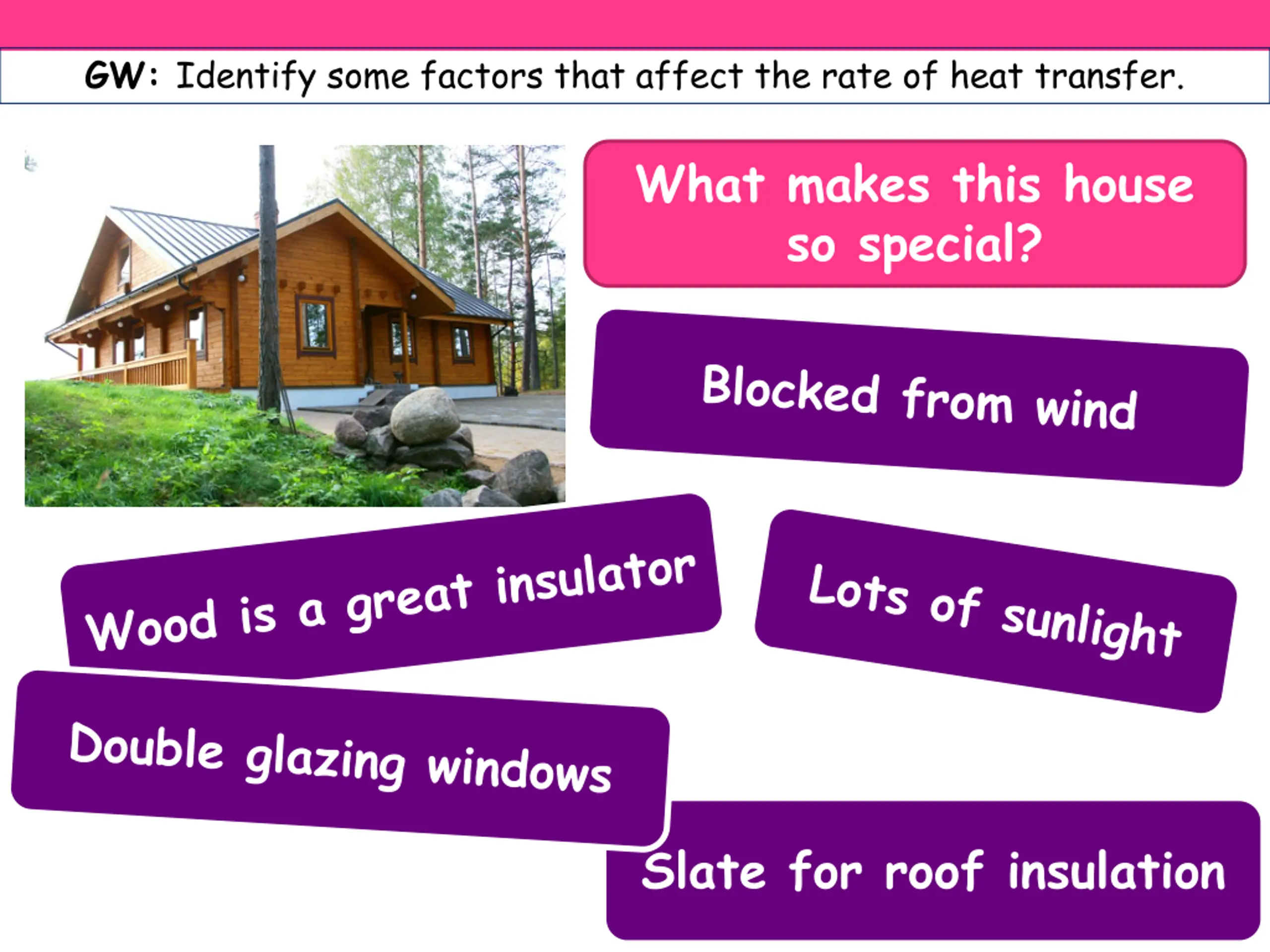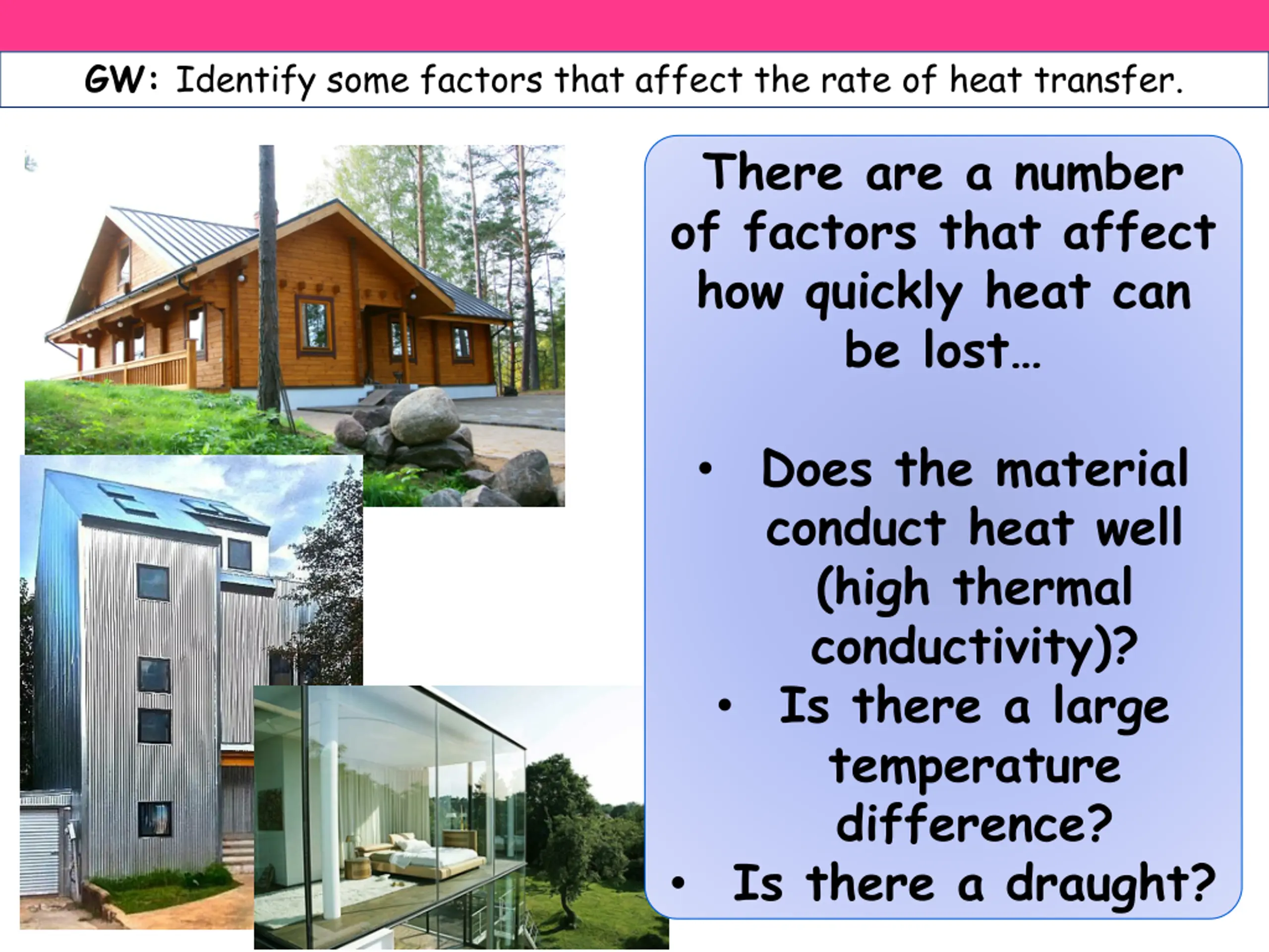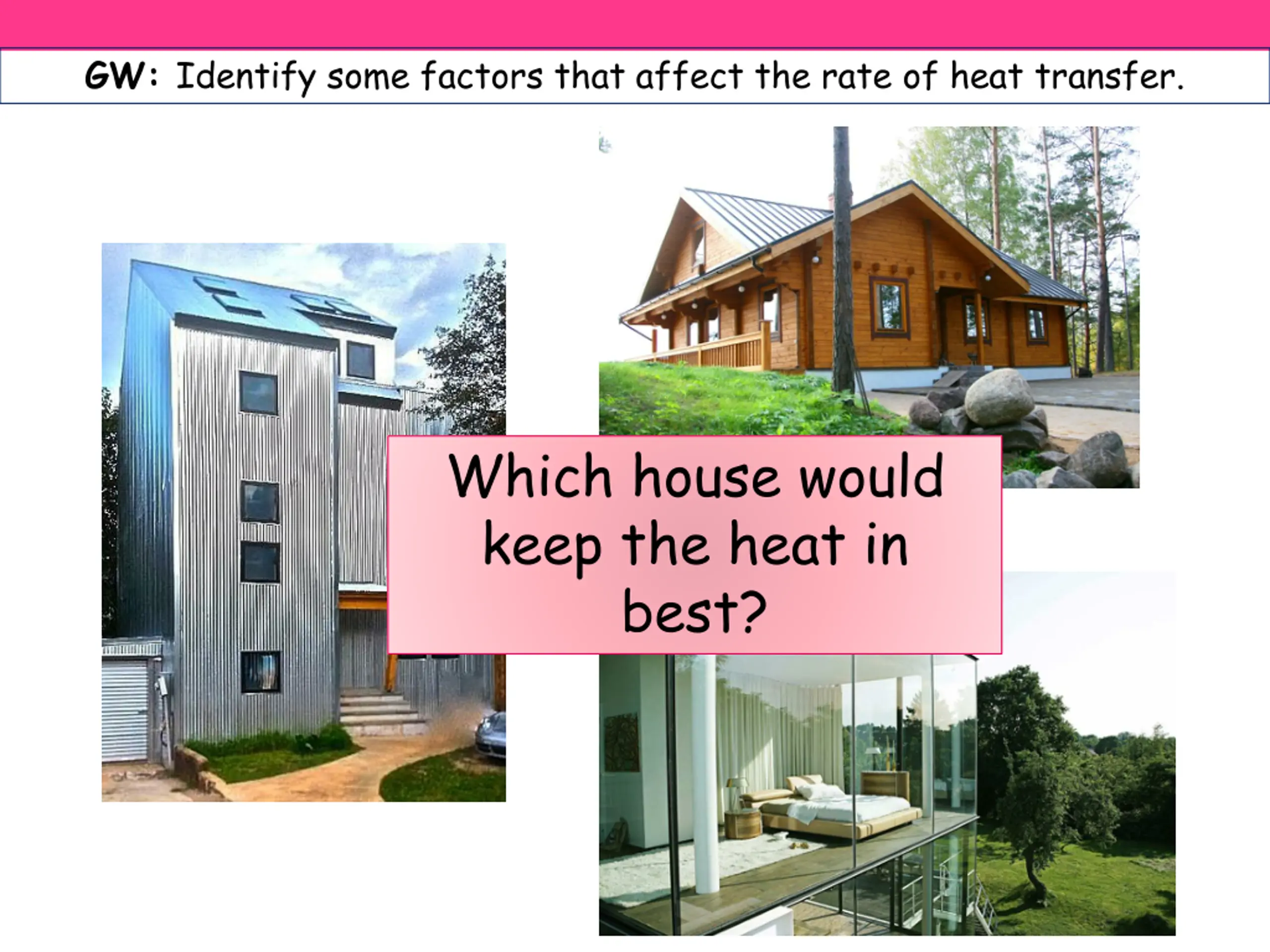 GW: Identify some factors that affect the rate of heat transfer. Which house would keep the heat in best?