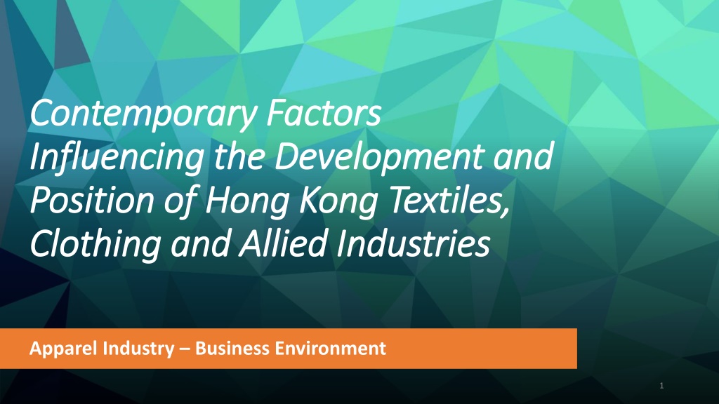 Contemporary Factors Contemporary Factors Influencing the Development and Influencing the Development and Position of Hong Kong Textiles, Position of Hong Kong Textiles, Clothing and Allied Industries Clothing and Allied Industries Apparel Industry Business Environment 1