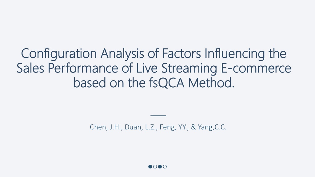 Configuration Analysis of Factors Influencing the Configuration Analysis of Factors Influencing the Sales Performance of Live Sales Performance of Live Streaming E based on the fsQCA Method. based on the fsQCA Method. Streaming E- -commerce commerce Chen, J.H., Duan, L.Z., Feng, Y.Y., & Yang,C.C.