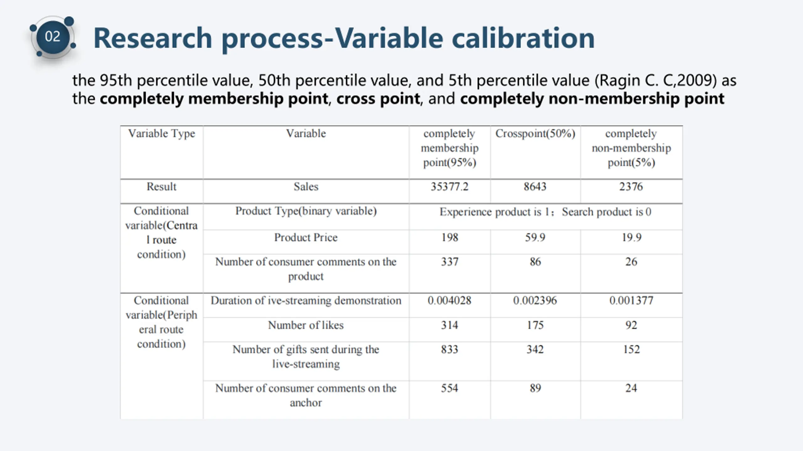 Research process-Variable calibration 02 the 95th percentile value, 50th percentile value, and 5th percentile value (Ragin C. C,2009) as the completely membership point, cross point, and completely non-membership point