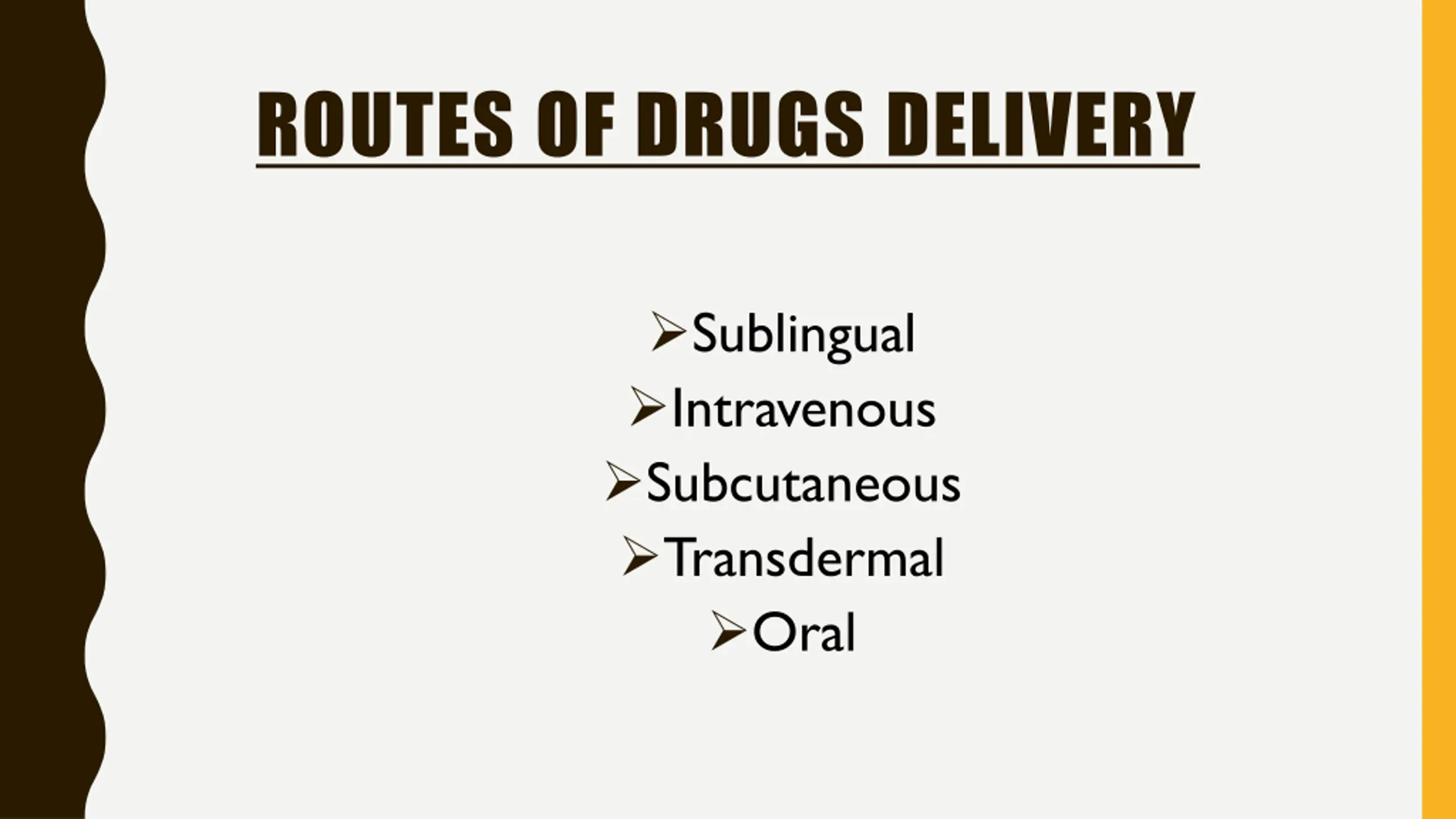 ROUTES OF DRUGS DELIVERY Sublingual Intravenous Subcutaneous Transdermal Oral