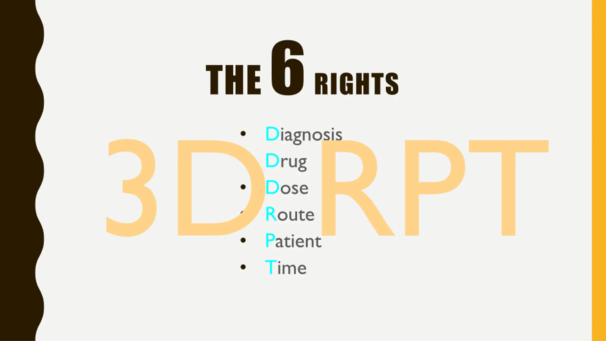 THE6 RIGHTS 3D RPT Diagnosis Drug Dose Route Patient Time