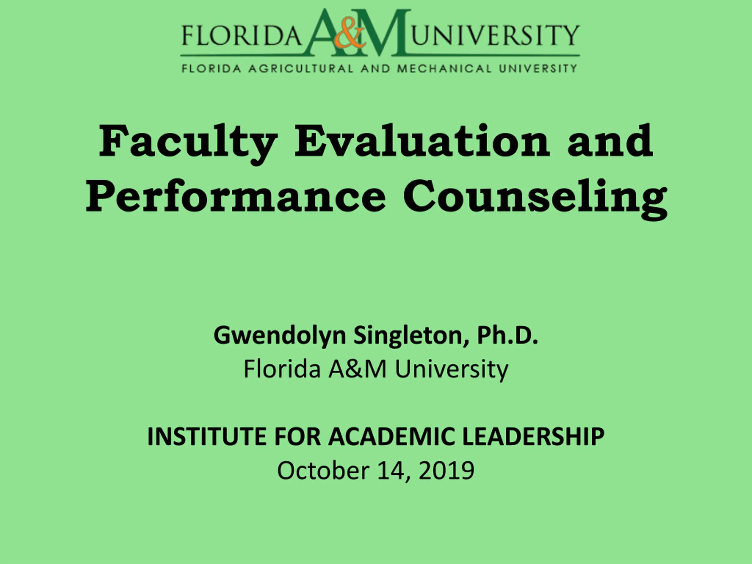 Faculty Evaluation and Performance Counseling Gwendolyn Singleton, Ph.D. Florida A&M University INSTITUTE FOR ACADEMIC LEADERSHIP October 14, 2019