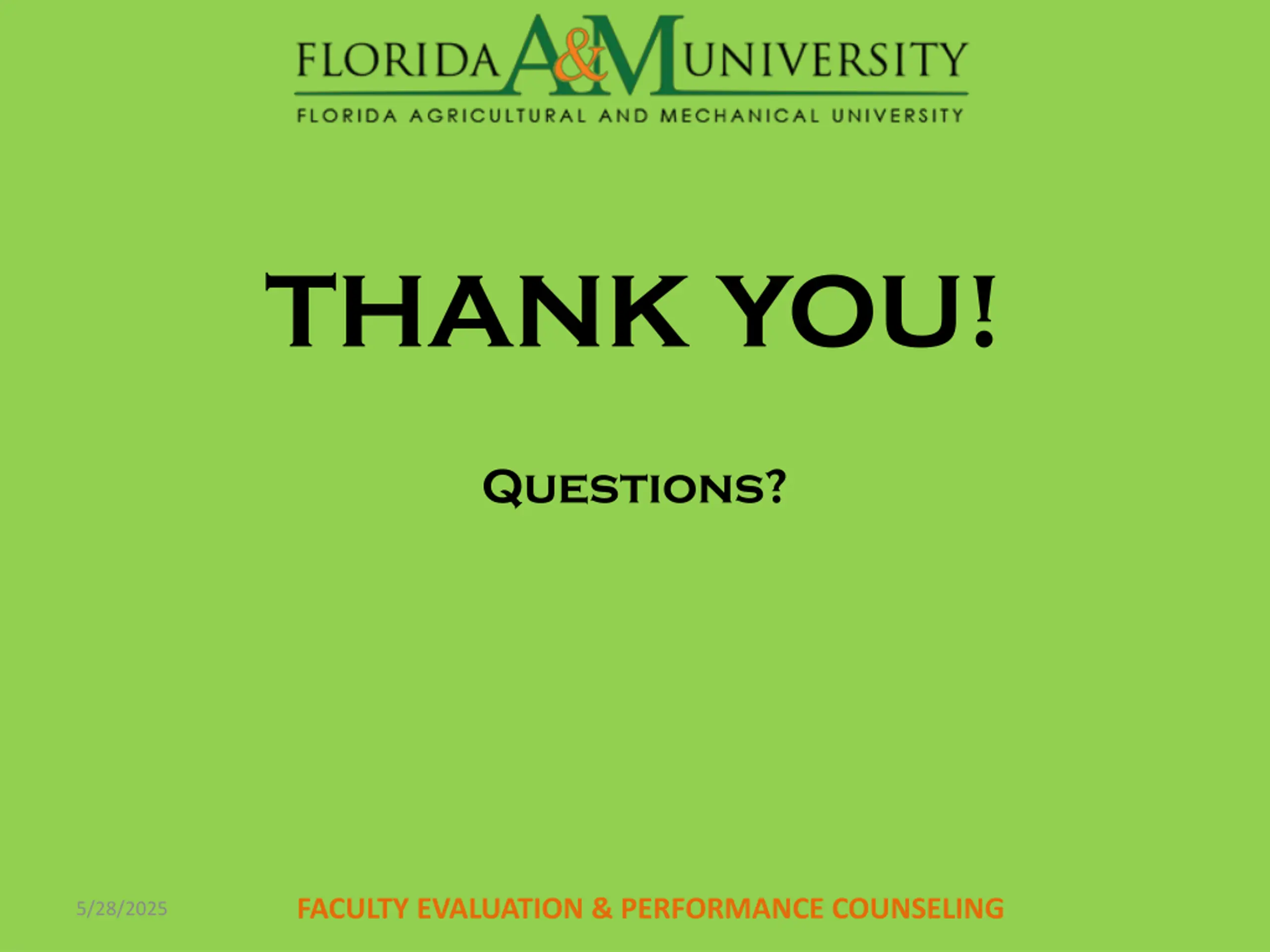 THANK YOU! Questions? FACULTY EVALUATION & PERFORMANCE COUNSELING 5/28/2025
