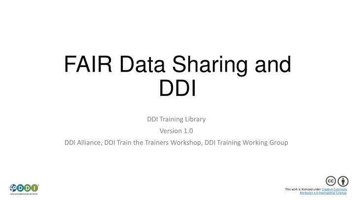 FAIR Data Sharing and DDI DDI Training Library Version 1.0 DDI Alliance, DDI Train the Trainers Workshop, DDI Training Working Group This work is licensed under Creative Commons Attribution 4.0 International License.