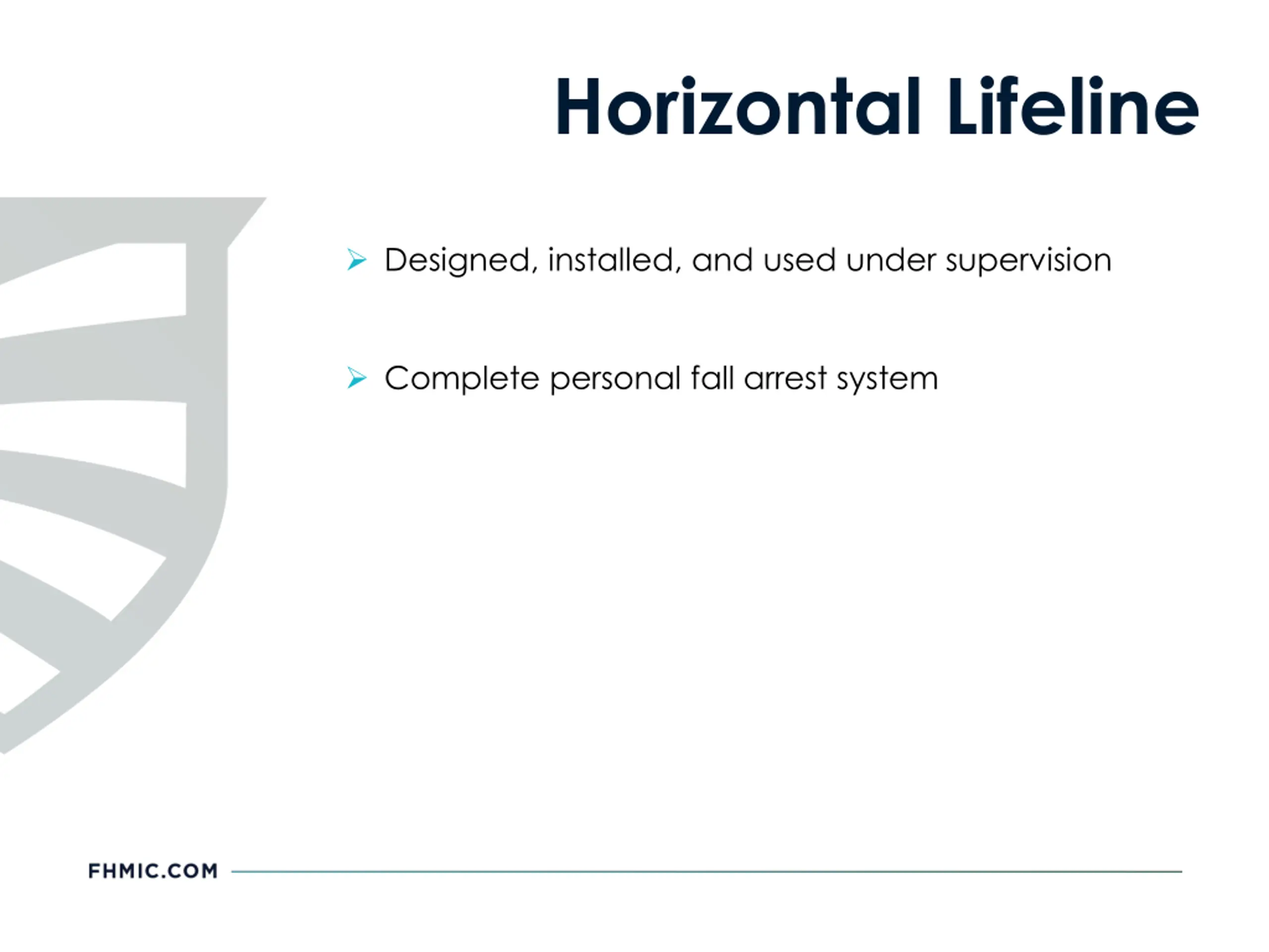 Horizontal Lifeline Designed, installed, and used under supervision Complete personal fall arrest system