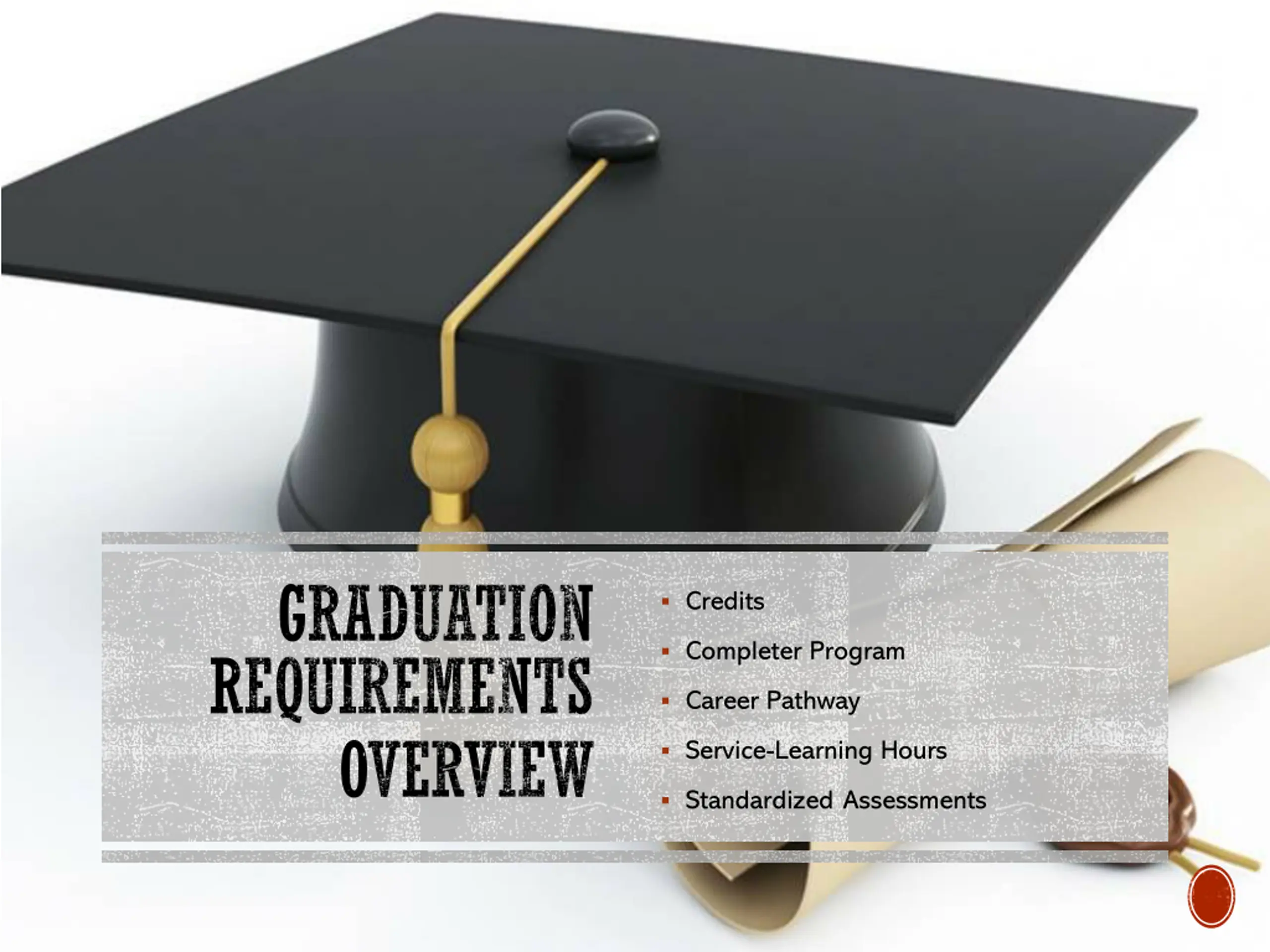 GRADUATION REQUIREMENTS OVERVIEW Credits Completer Program Career Pathway Service-Learning Hours Standardized Assessments