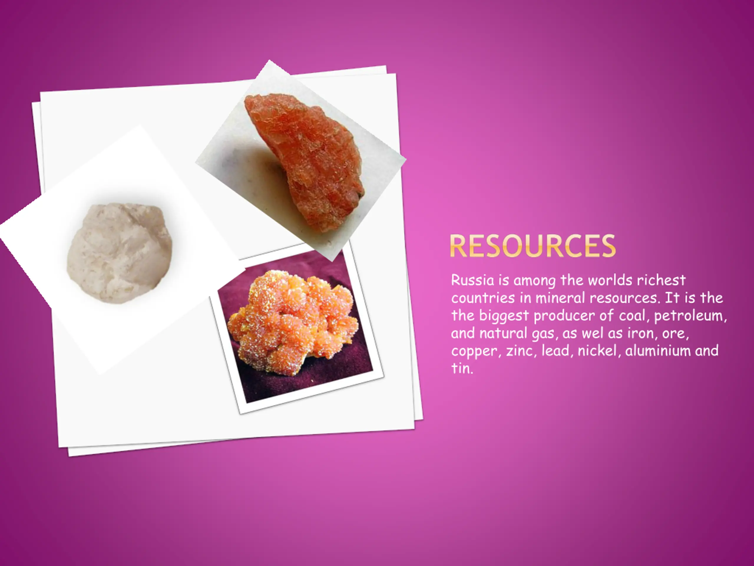 RESOURCES Russia is among the worlds richest countries in mineral resources. It is the the biggest producer of coal, petroleum, and natural gas, as wel as iron, ore, copper, zinc, lead, nickel, aluminium and tin.