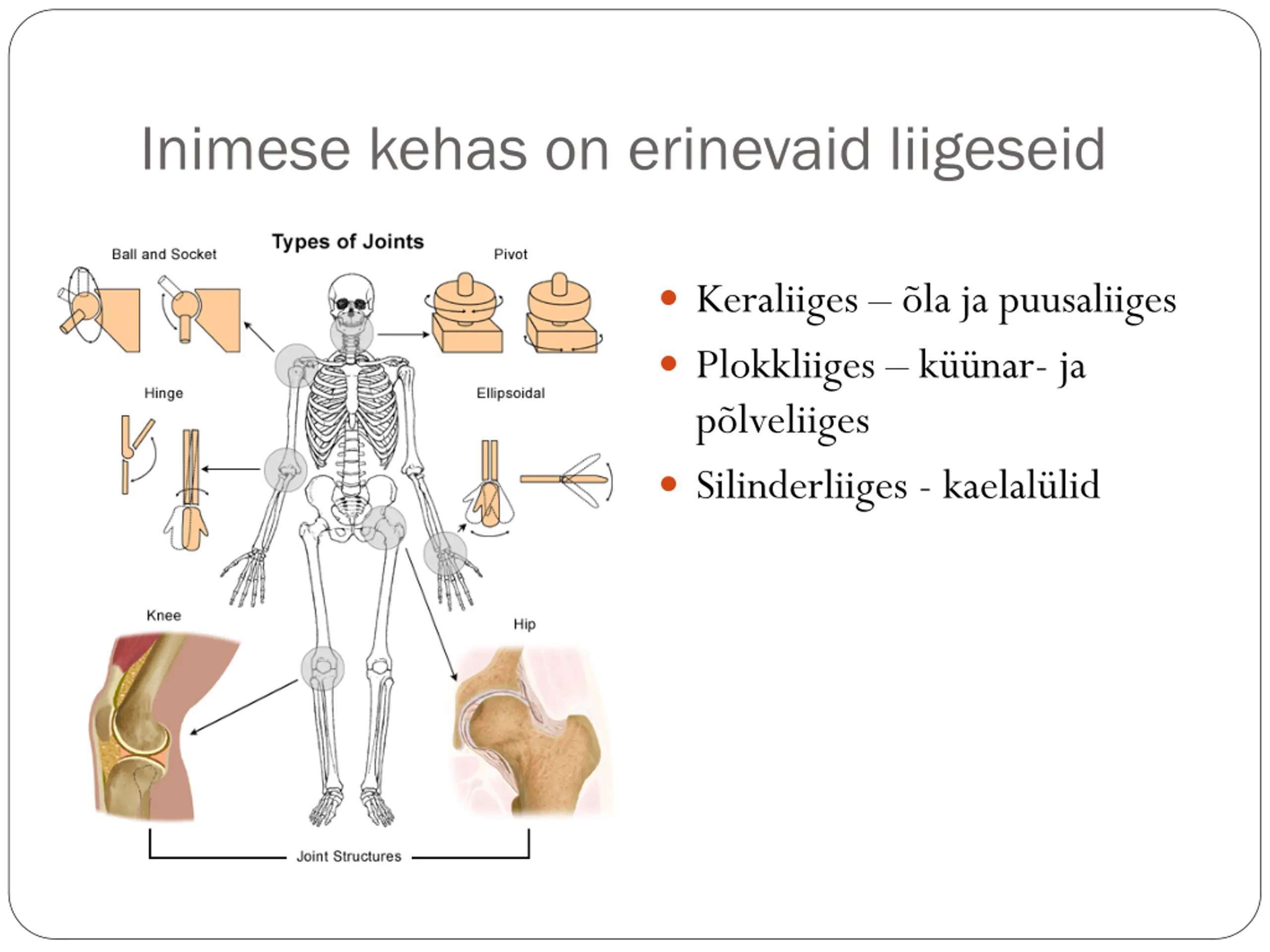 Inimese kehas on erinevaid liigeseid Keraliiges la ja puusaliiges Plokkliiges k nar- ja p lveliiges Silinderliiges - kaelal lid
