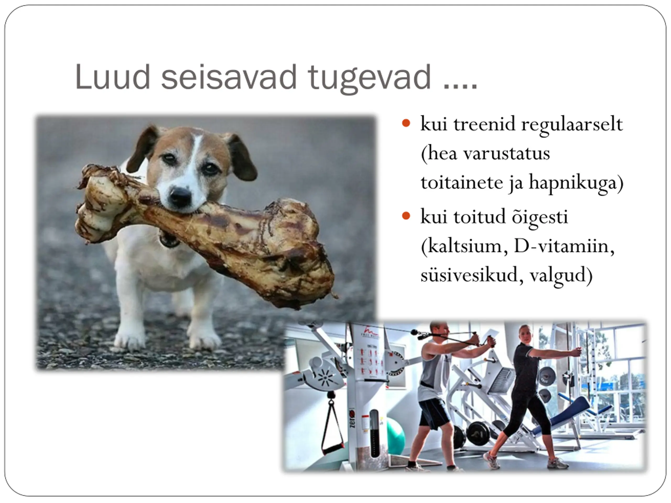 Luud seisavad tugevad . kui treenid regulaarselt (hea varustatus toitainete ja hapnikuga) kui toitud igesti (kaltsium, D-vitamiin, s sivesikud, valgud)