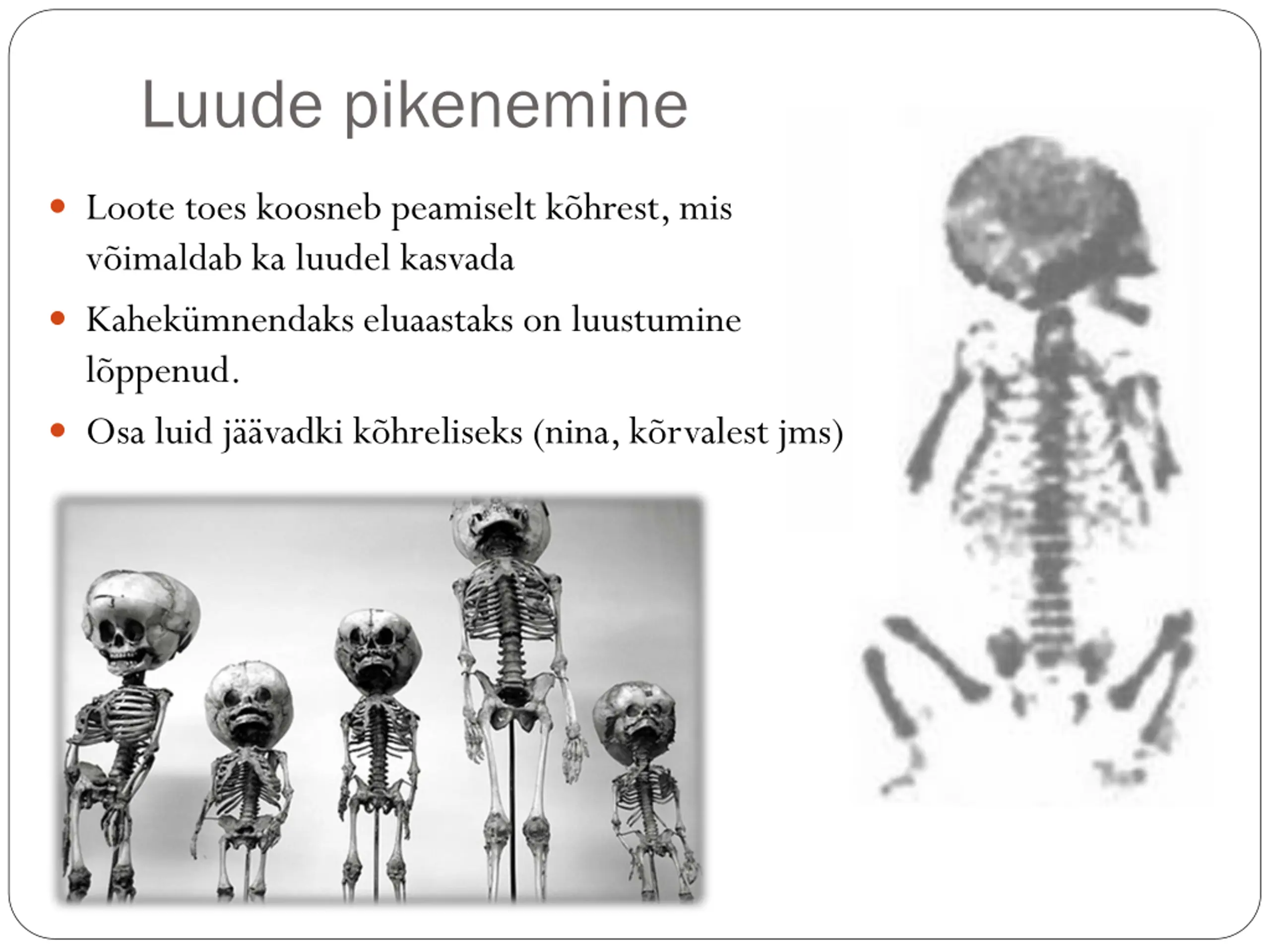 Luude pikenemine Loote toes koosneb peamiselt k hrest, mis v imaldab ka luudel kasvada Kahek mnendaks eluaastaks on luustumine l ppenud. Osa luid j vadki k hreliseks (nina, k rvalest jms)