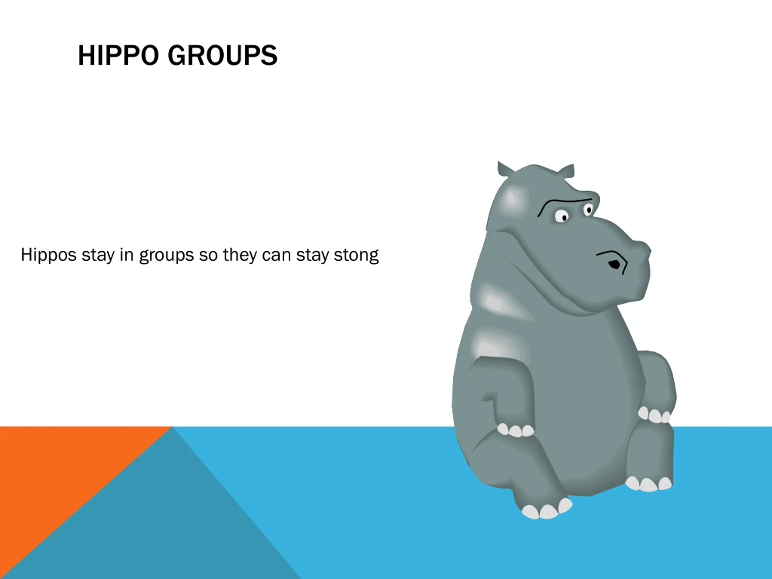 HIPPO GROUPS Hippos stay in groups so they can stay stong