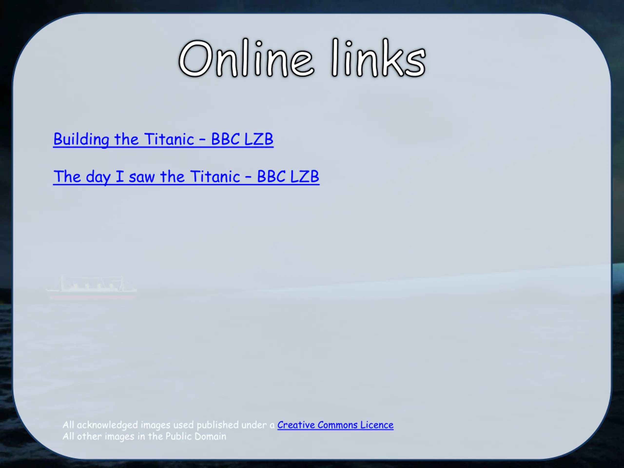 Online links Building the Titanic BBC LZB The day I saw the Titanic BBC LZB All acknowledged images used published under a Creative Commons Licence All other images in the Public Domain
