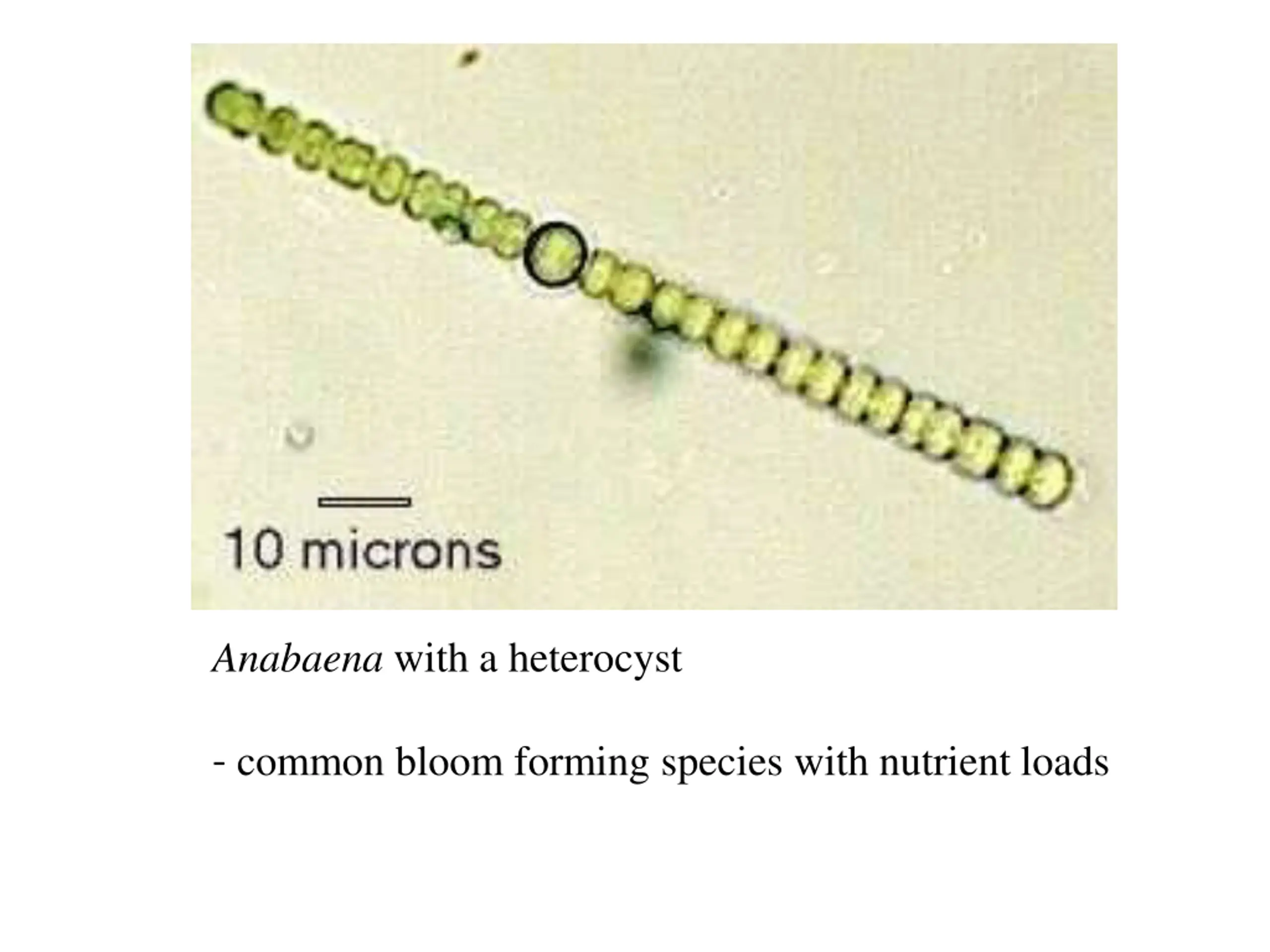 Anabaena with a heterocyst - common bloom forming species with nutrient loads