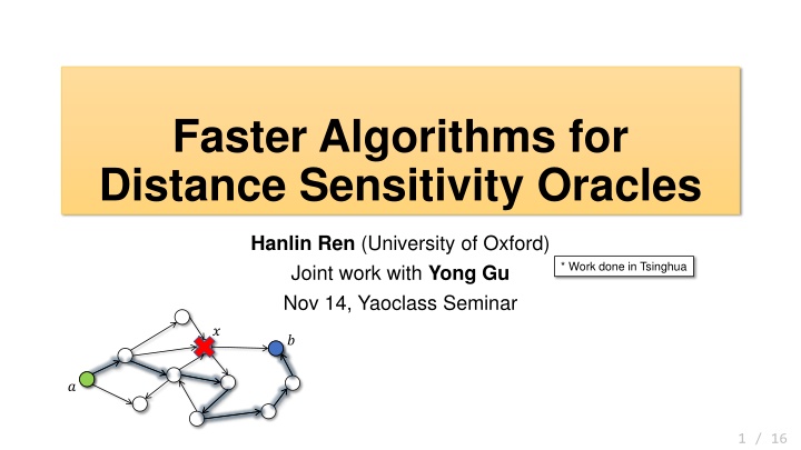 Faster Algorithms for Distance Sensitivity Oracles Hanlin Ren (University of Oxford) Joint work with Yong Gu Nov 14, Yaoclass Seminar * Work done in Tsinghua ? ? ? 1 / 16