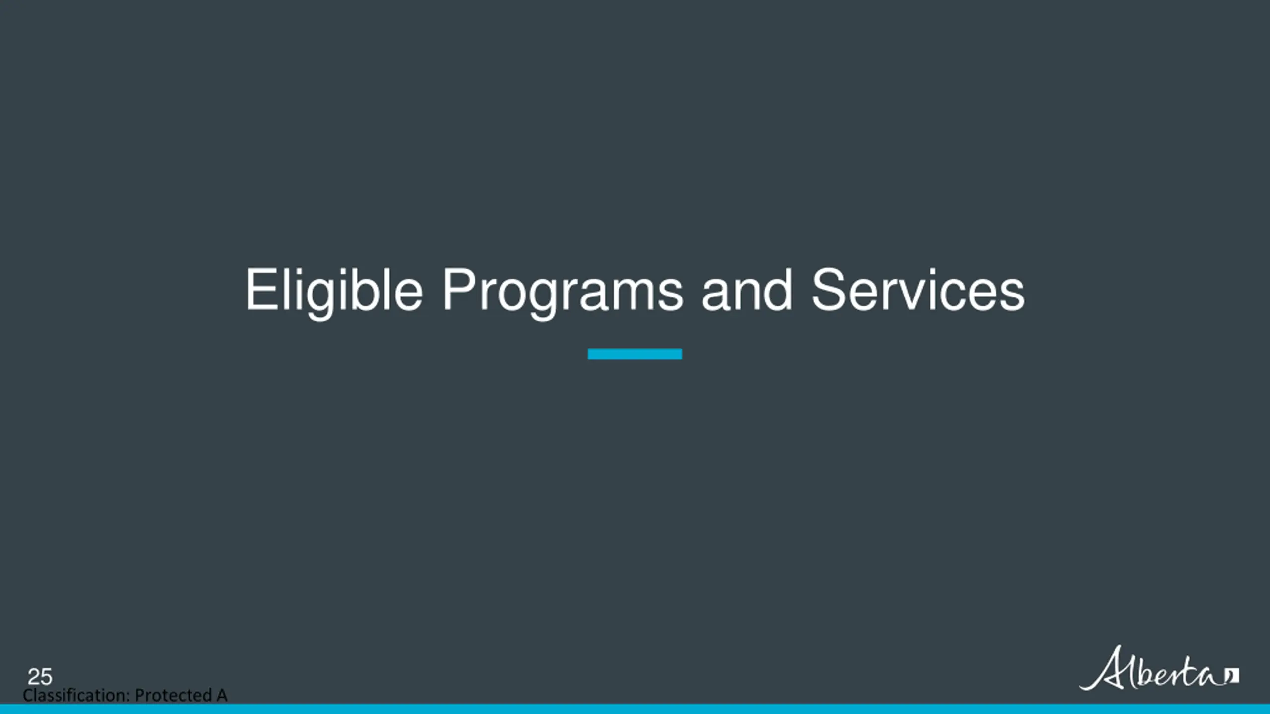 Eligible Programs and Services 25 Classification: Protected A