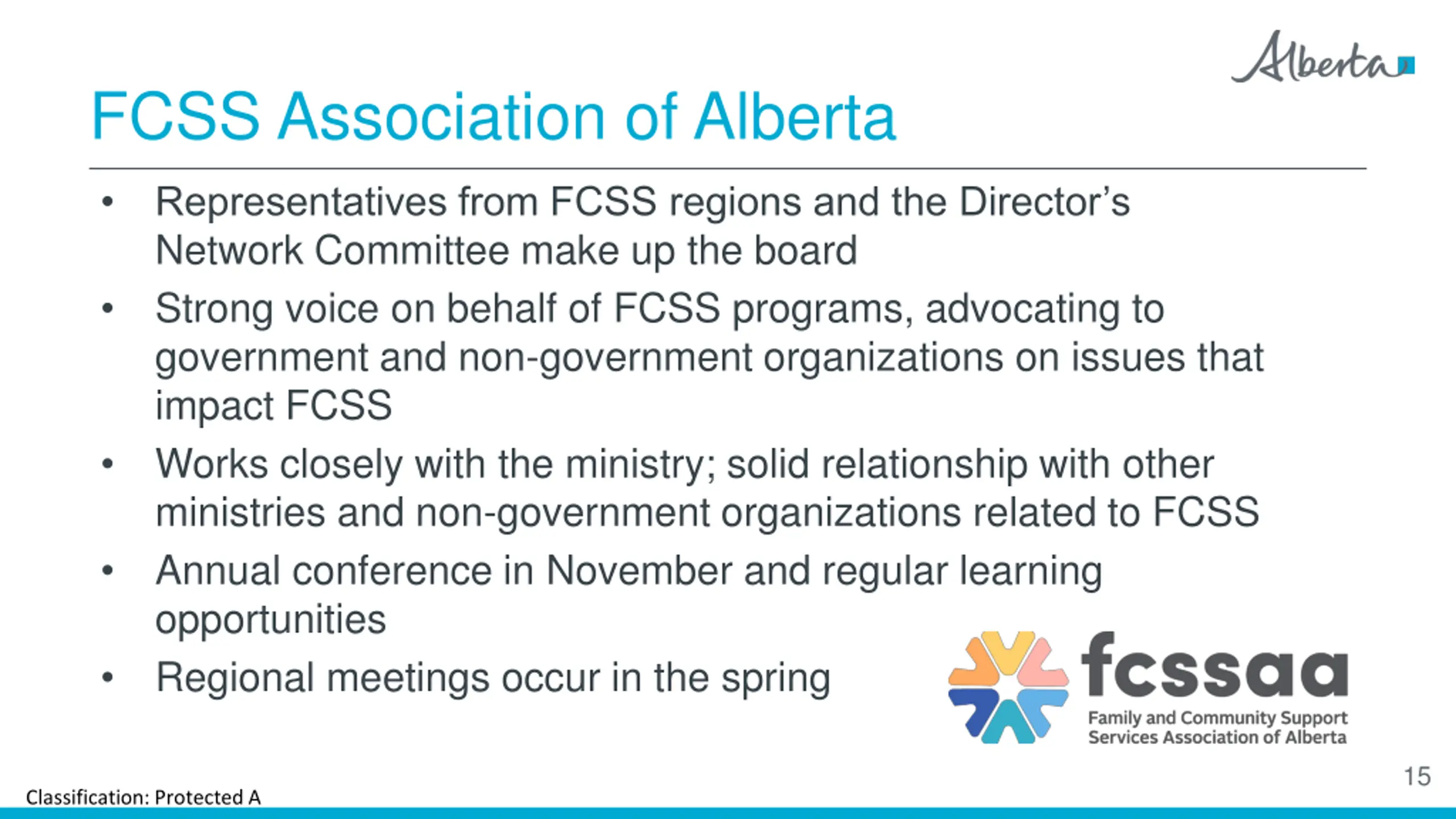 The FCSSAA Working Together 12 Classification: Protected A