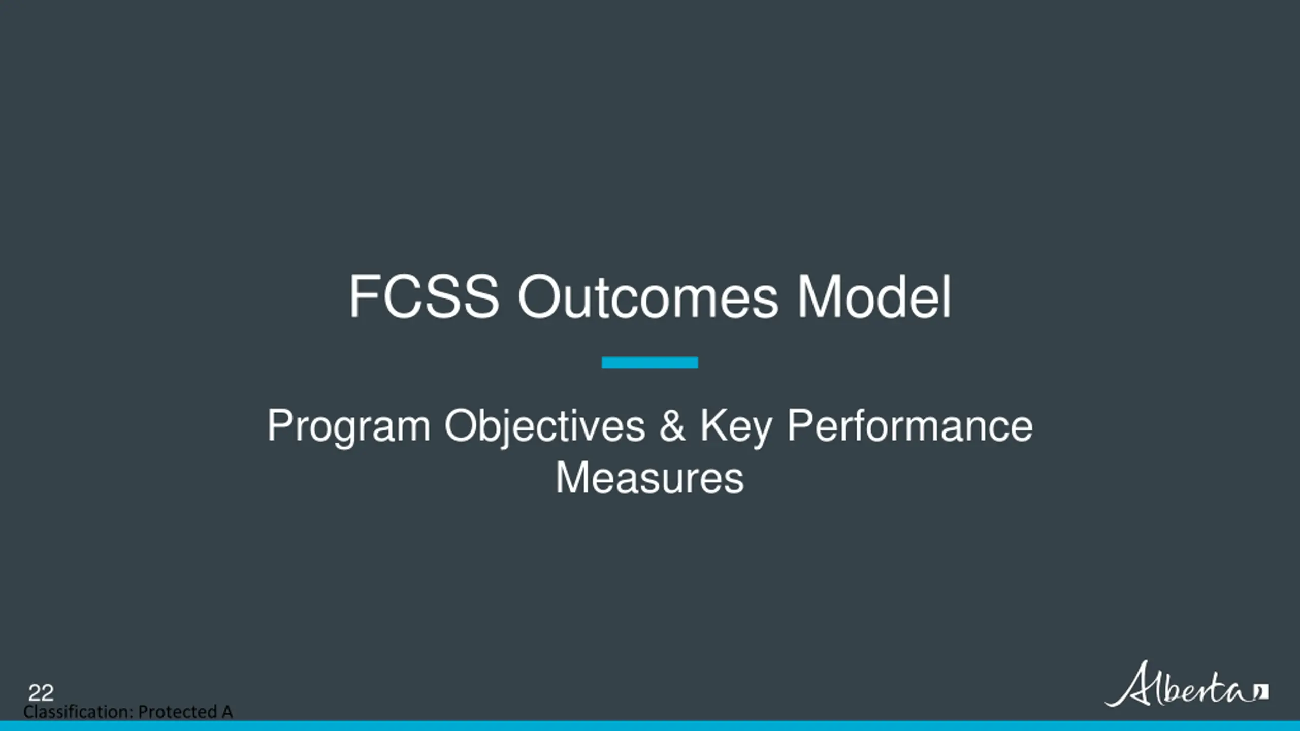 FCSS Outcomes Model Program Objectives & Key Performance Measures 22 Classification: Protected A