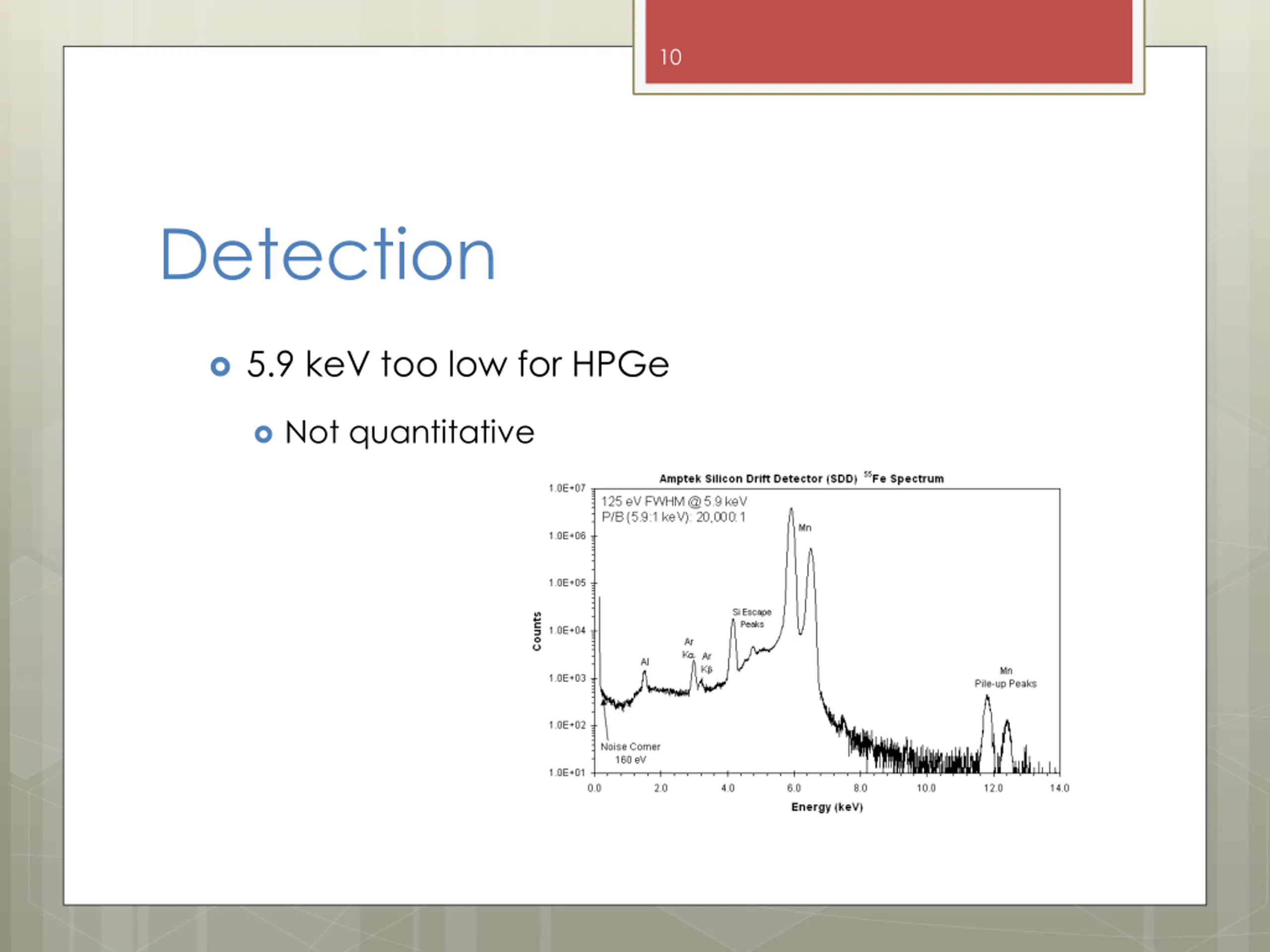 10 Detection 5.9 keV too low for HPGe Not quantitative