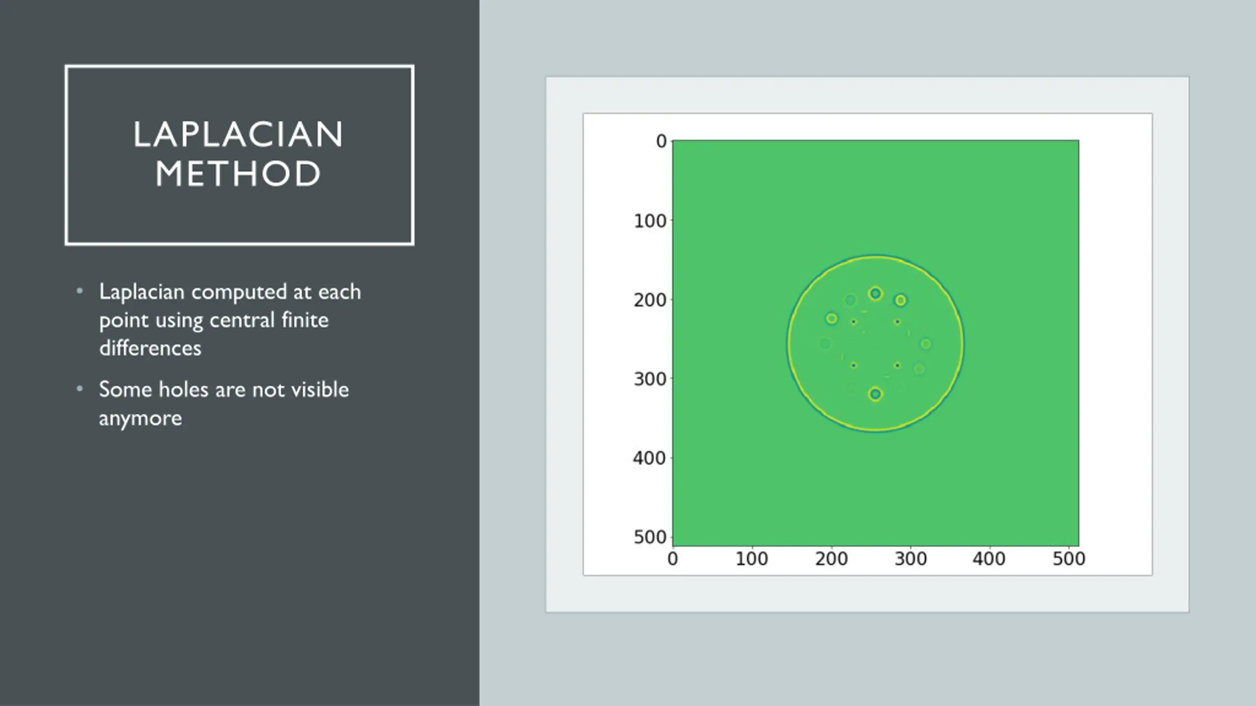 LAPLACIAN METHOD Laplacian computed at each point using central finite differences Some holes are not visible anymore