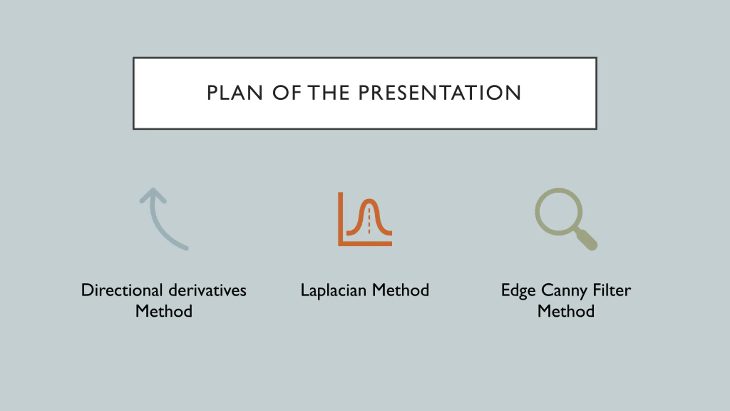 PLAN OF THE PRESENTATION Directional derivatives Method Laplacian Method Edge Canny Filter Method