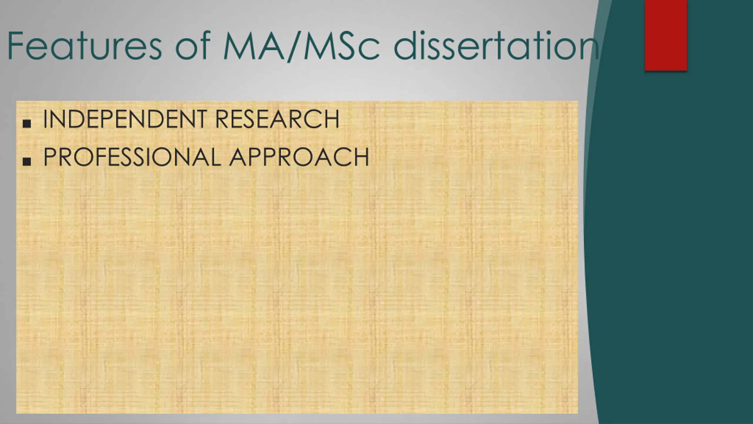 Features of MA/MSc dissertation INDEPENDENT RESEARCH PROFESSIONAL APPROACH