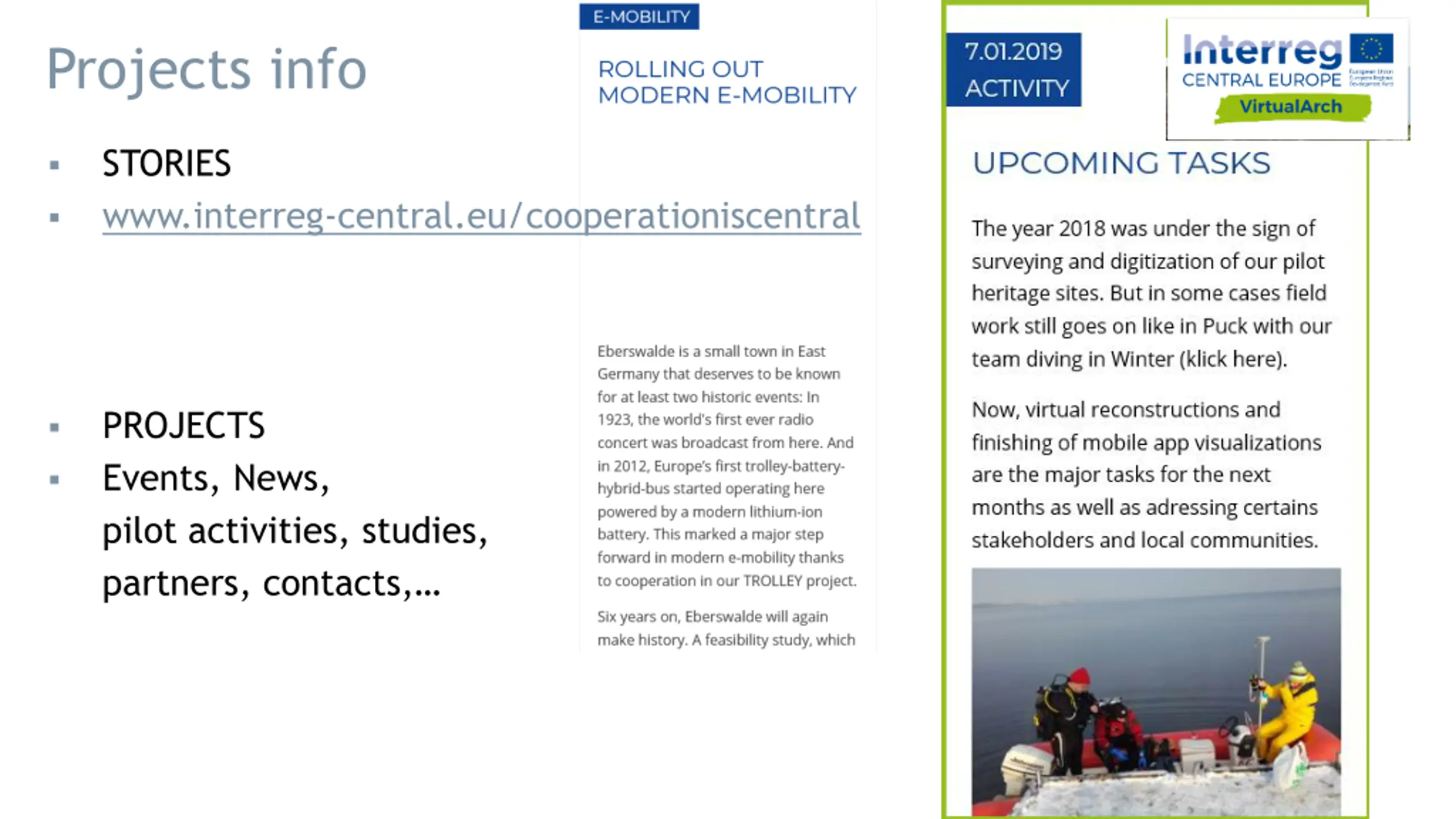 Projects info STORIES www.interreg-central.eu/cooperationiscentral PROJECTS Events, News, pilot activities, studies, partners, contacts, TAKING COOPERATION FORWARD