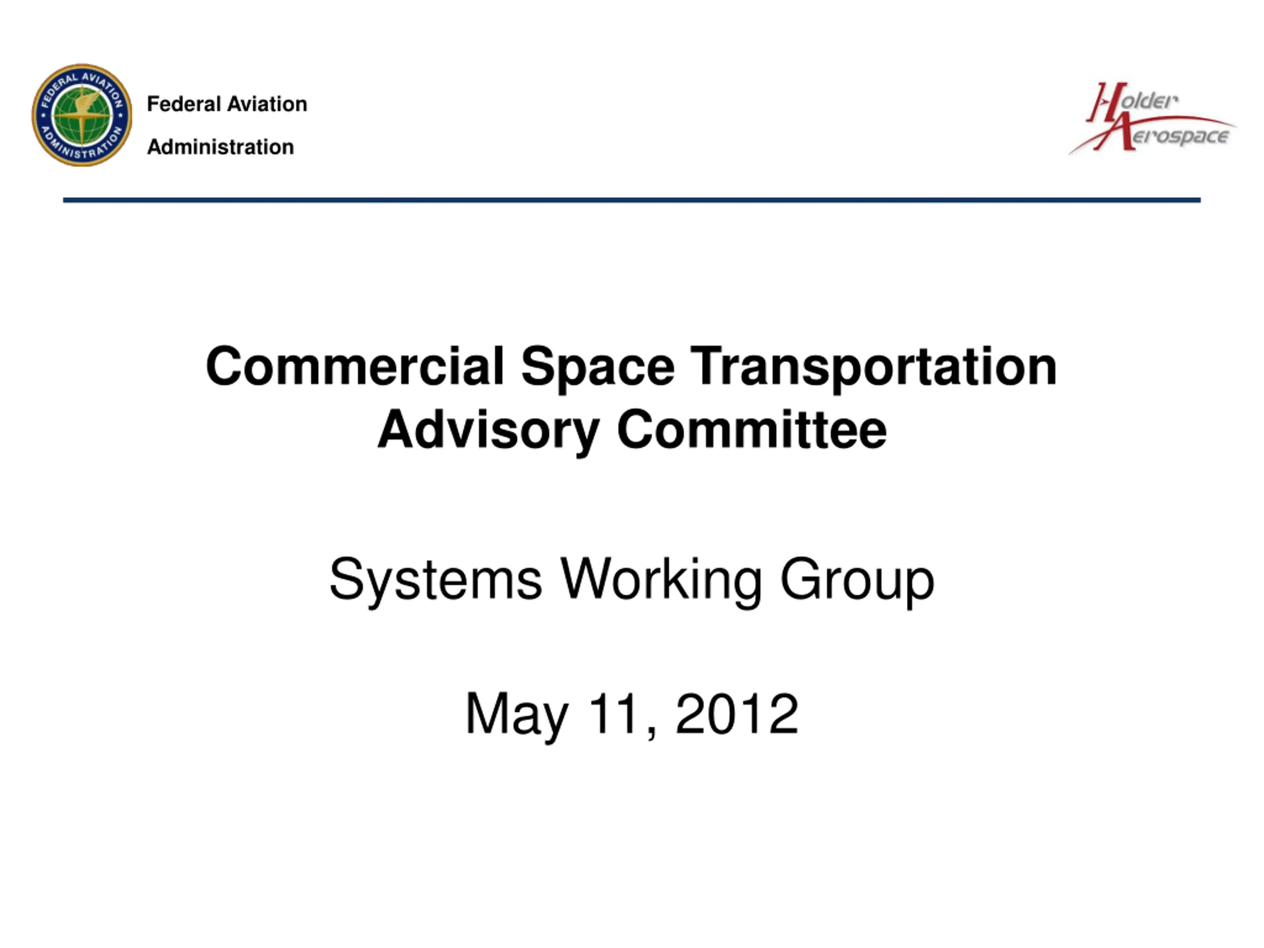 Federal Aviation Administration Commercial Space Transportation Advisory Committee Systems Working Group May 11, 2012
