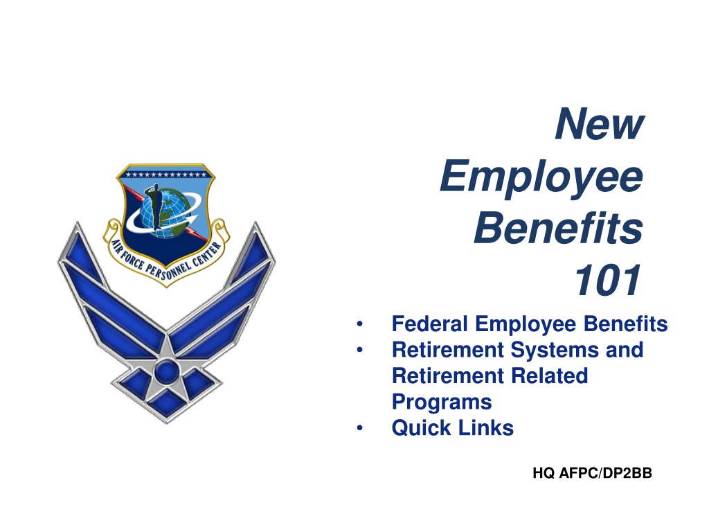 New Employee Benefits 101 Federal Employee Benefits Retirement Systems and Retirement Related Programs Quick Links HQ AFPC/DP2BB