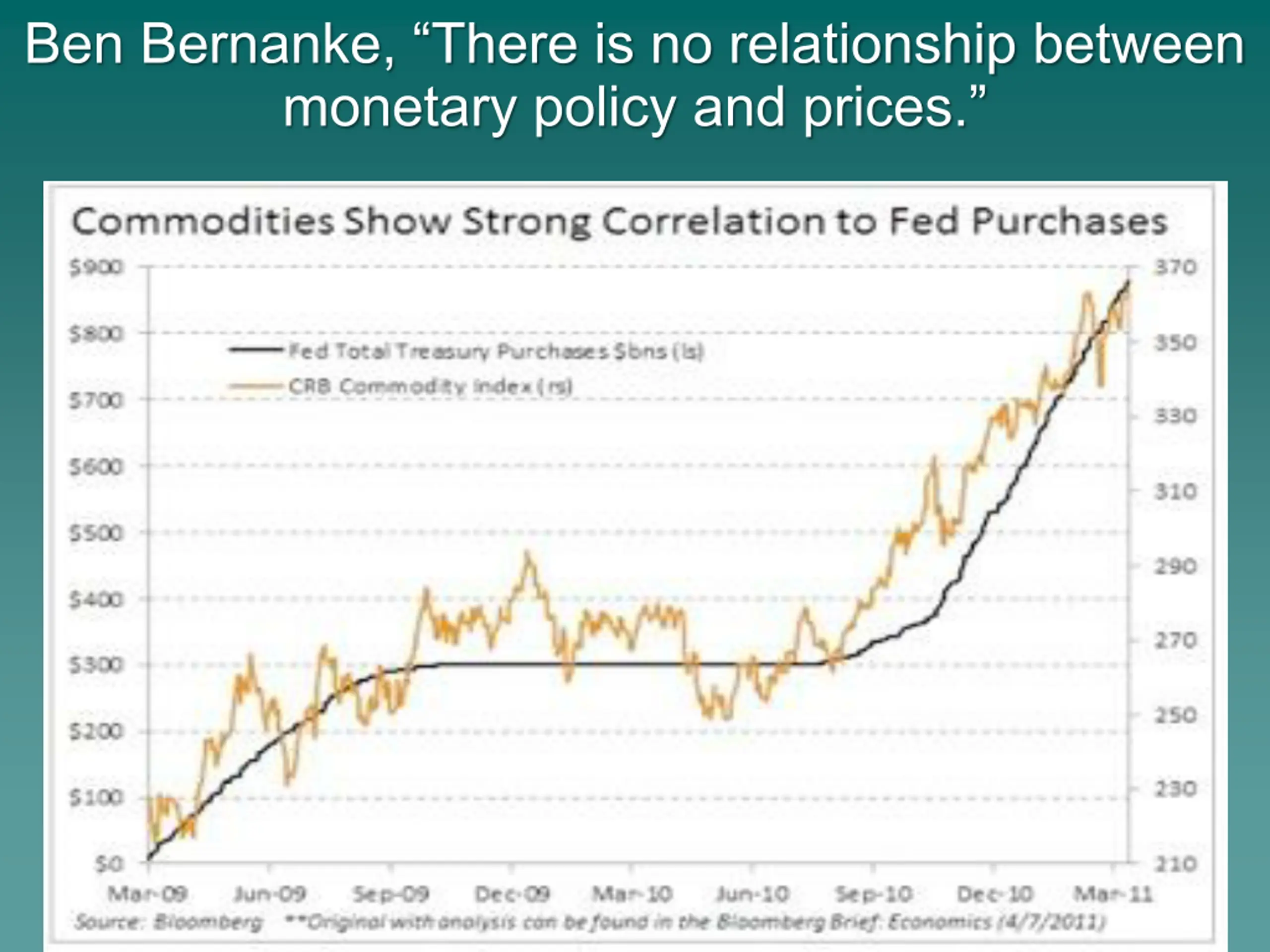 Ben Bernanke, There is no relationship between monetary policy and prices.