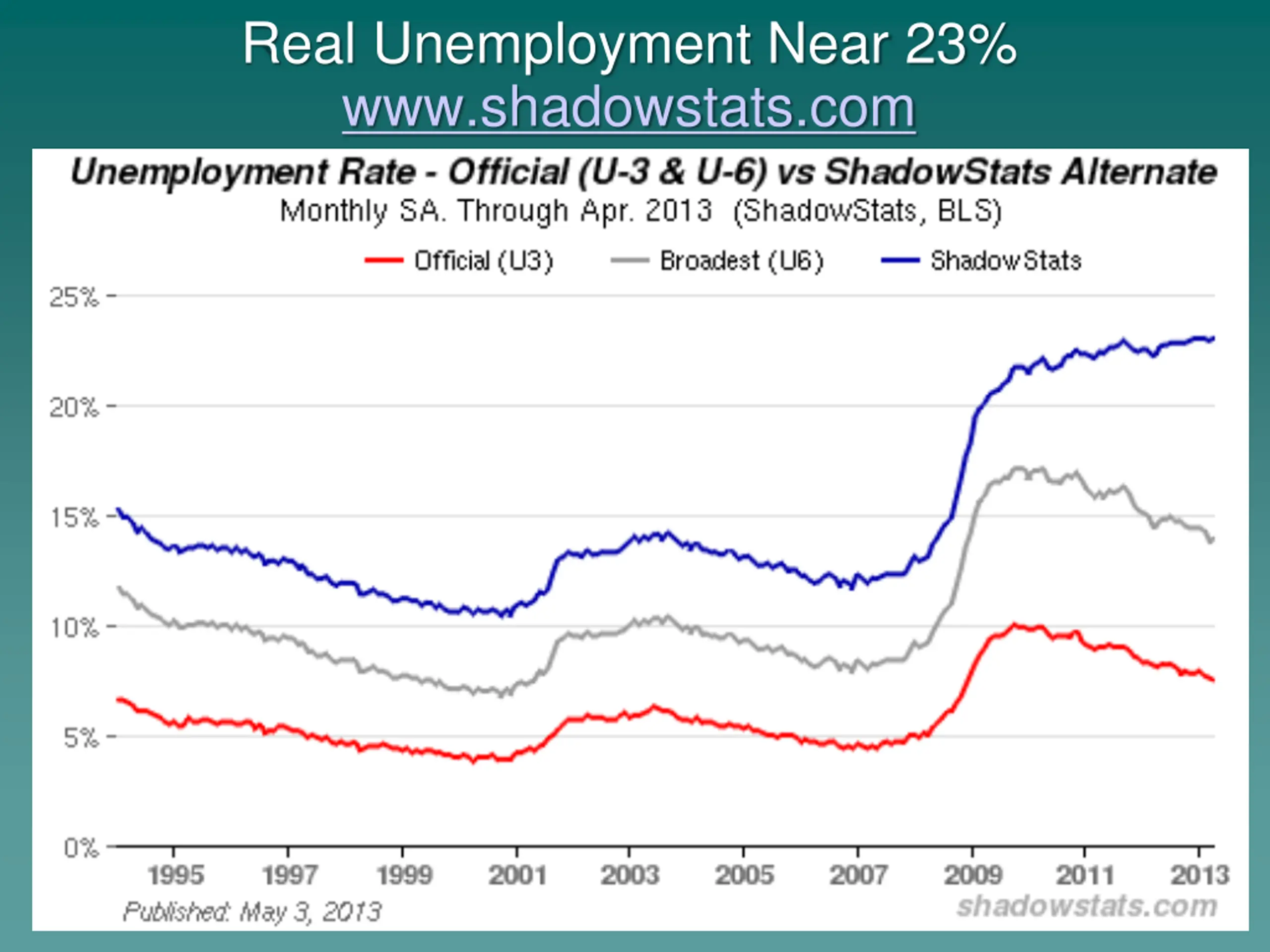Real Unemployment Near 23% www.shadowstats.com