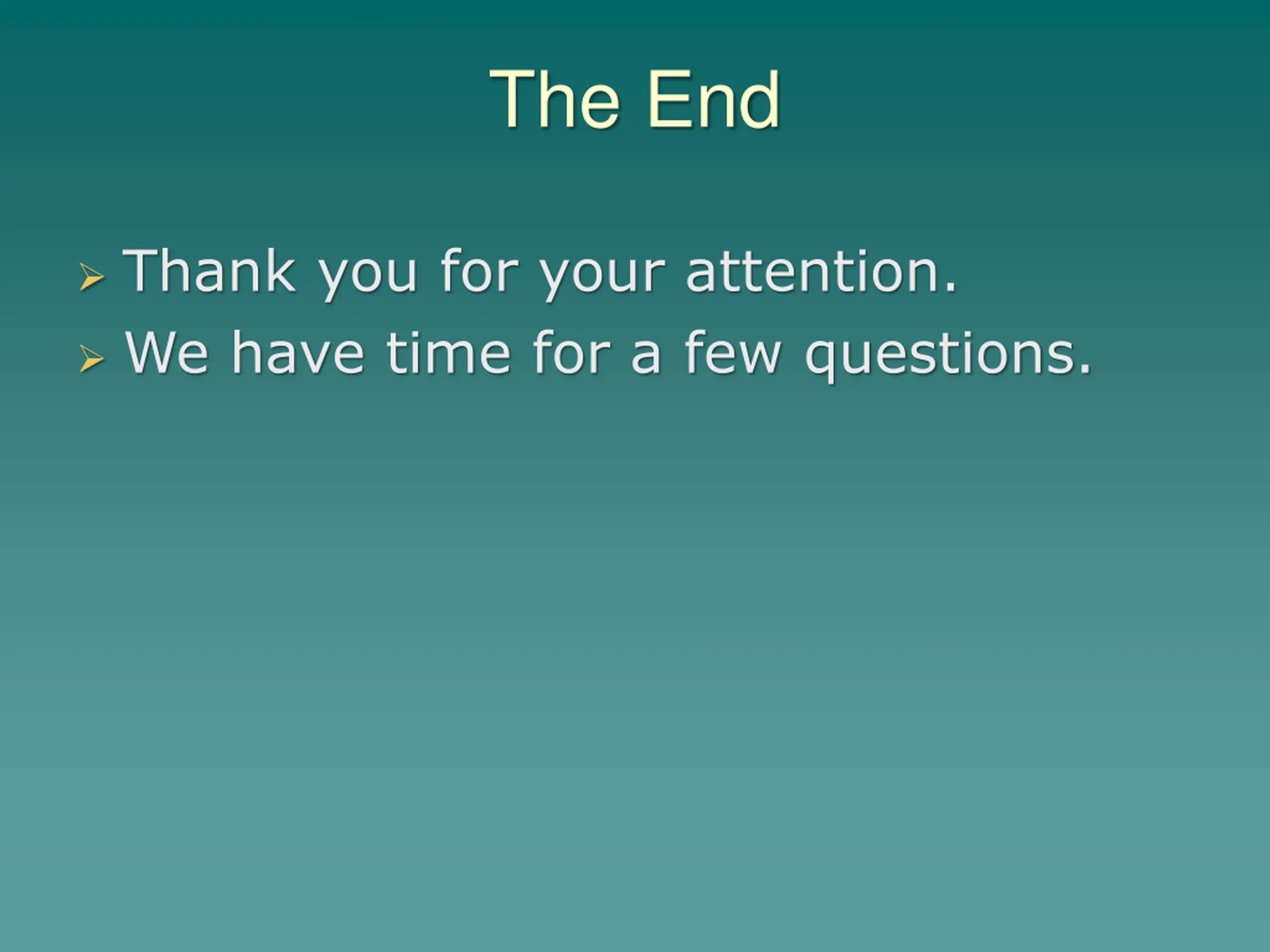 The End Thank you for your attention. We have time for a few questions.