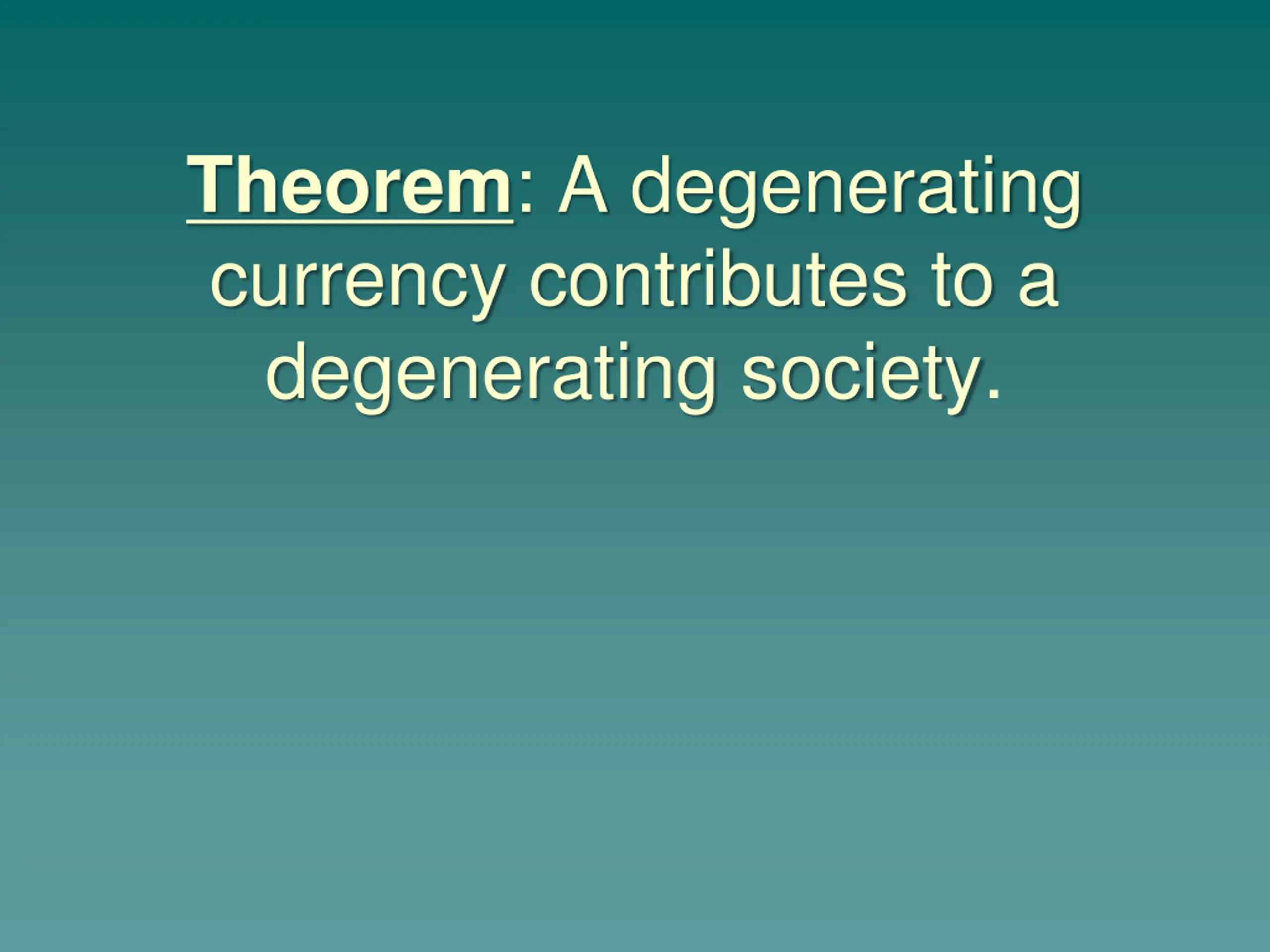 Theorem: A degenerating currency contributes to a degenerating society.