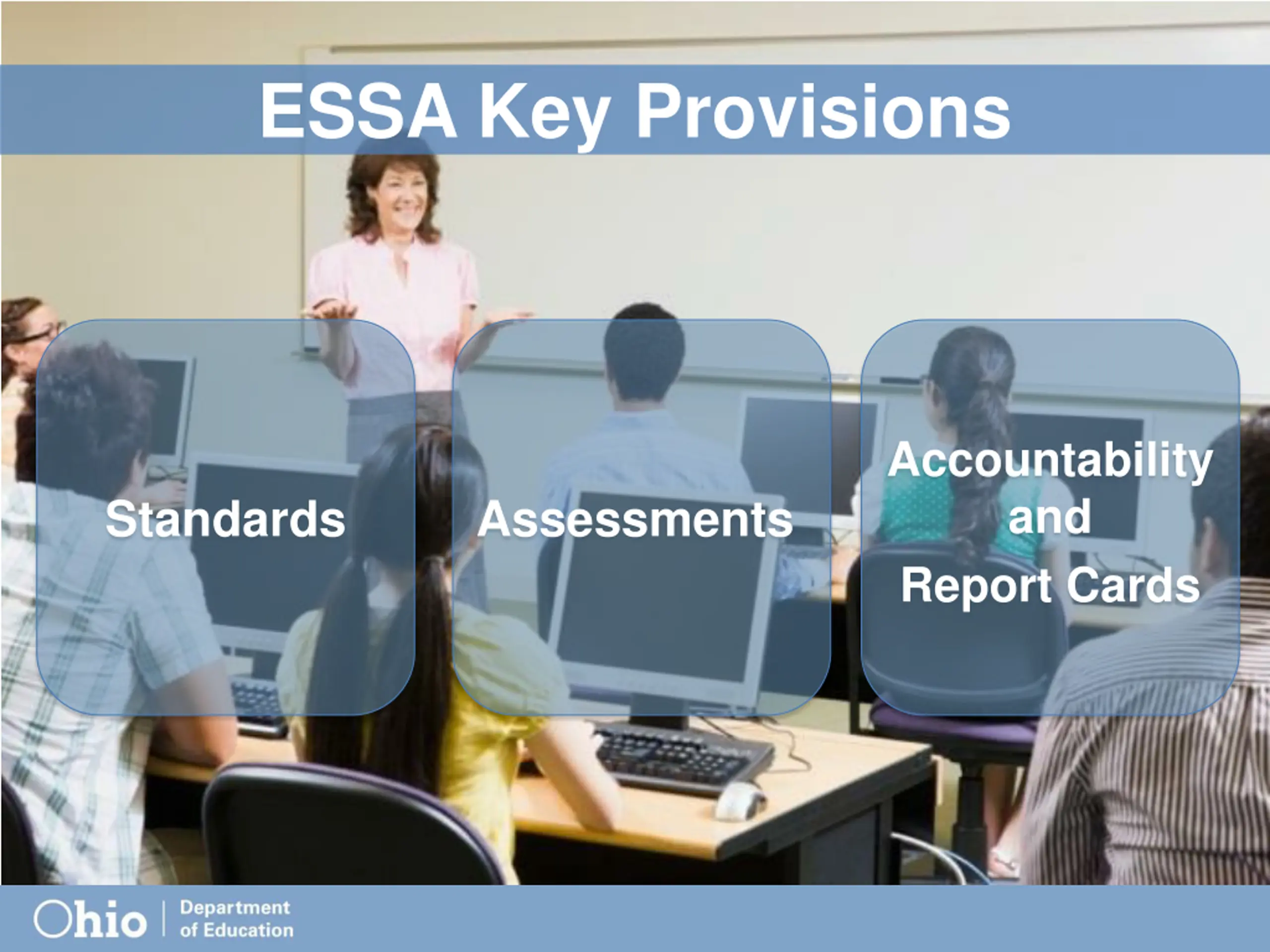 ESSA Key Provisions Accountability and Report Cards Standards Assessments